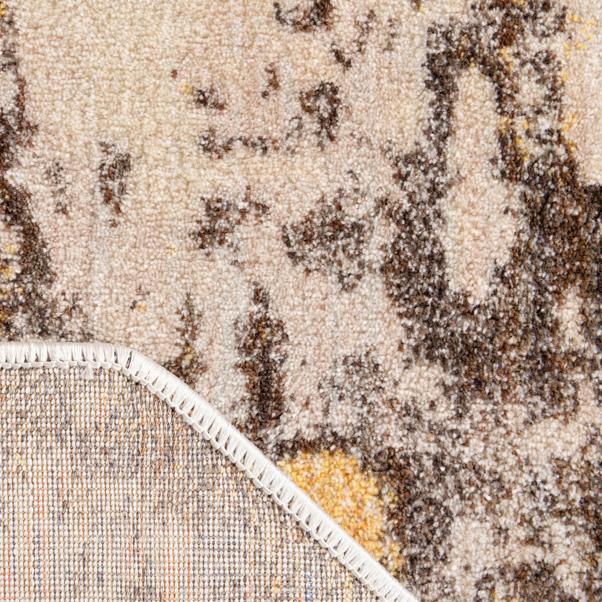 The Apollo collection presents a machine-woven 8 Ft Octagon rug, crafted from 100% polypropylene with space-dyed yarn, ensuring a blend of durability and subtle color variations. The texture of this piece provides a soft hand, accompanied by a palette of Ivory Beige, Beige, Brown, and Gold tones. The rug features a rustic yet contemporary aesthetic, showcasing a distressed pattern that imparts a sense of depth and movement.