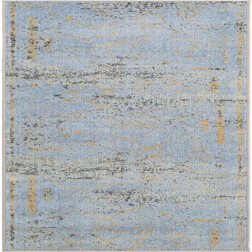 Primary color is Ivory Blue. Colors in this rug include: Ivory Blue, Yellow, Gray.