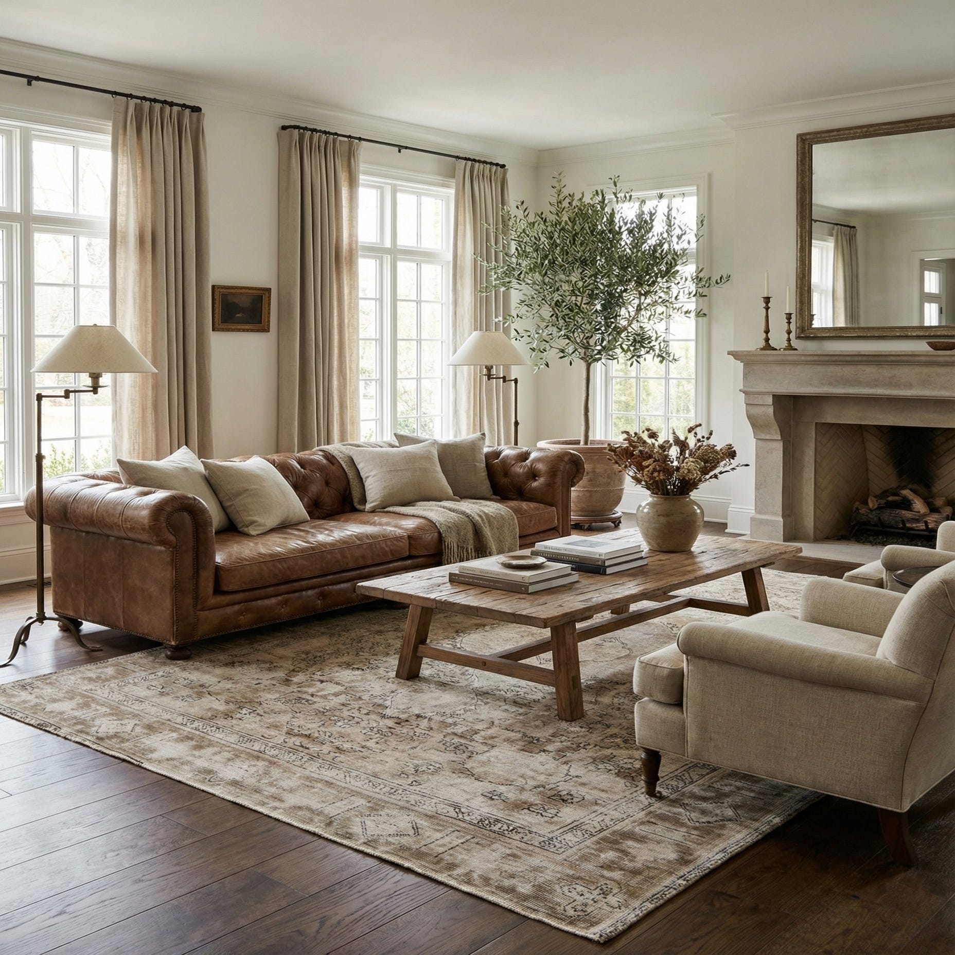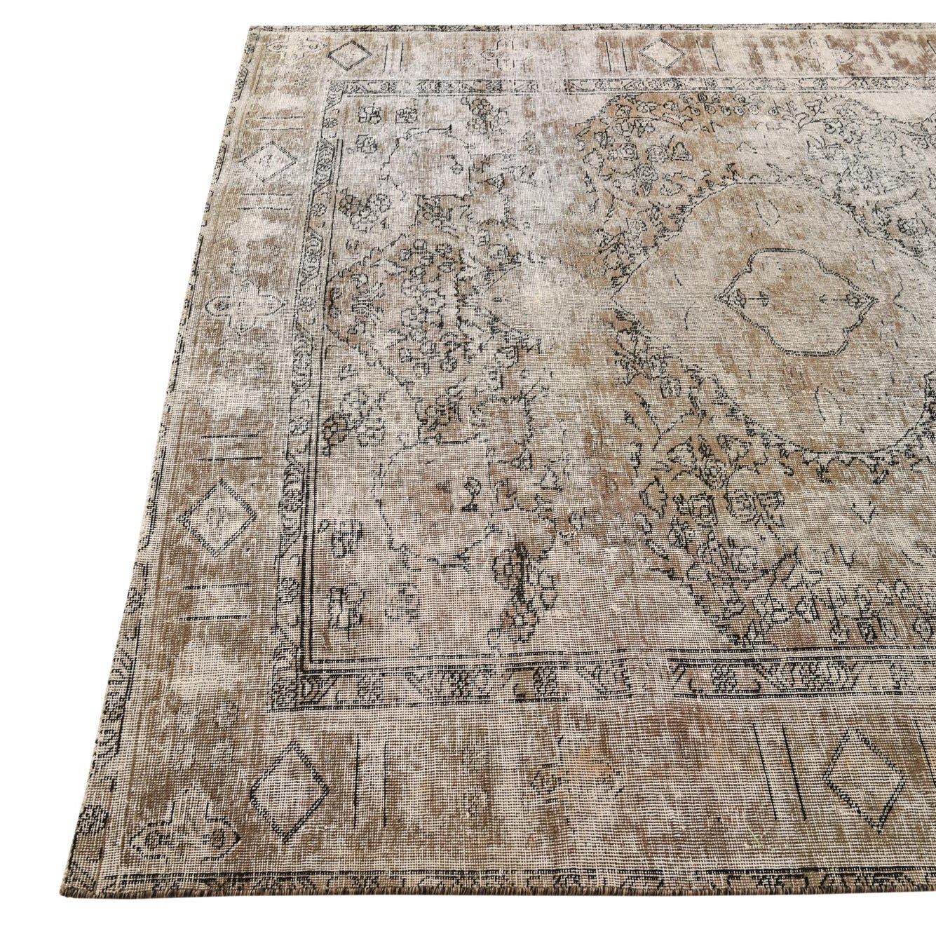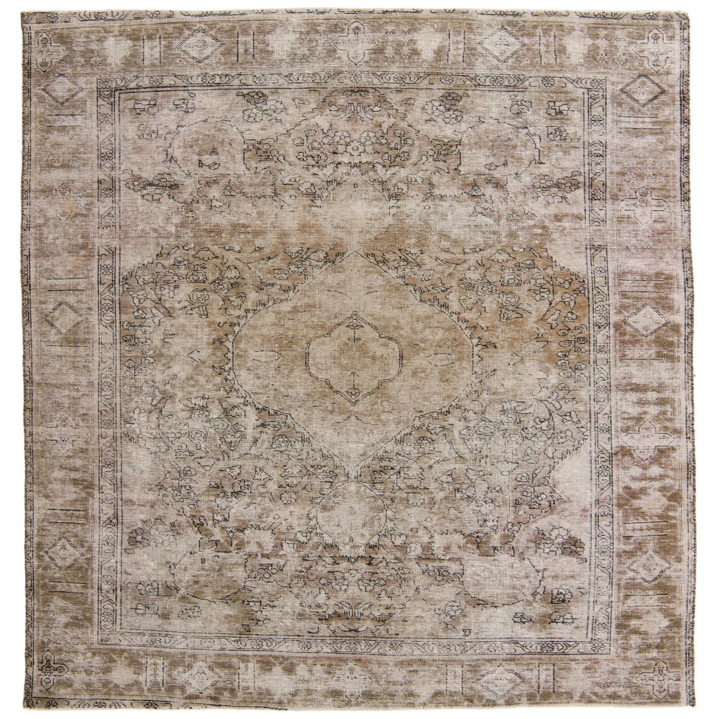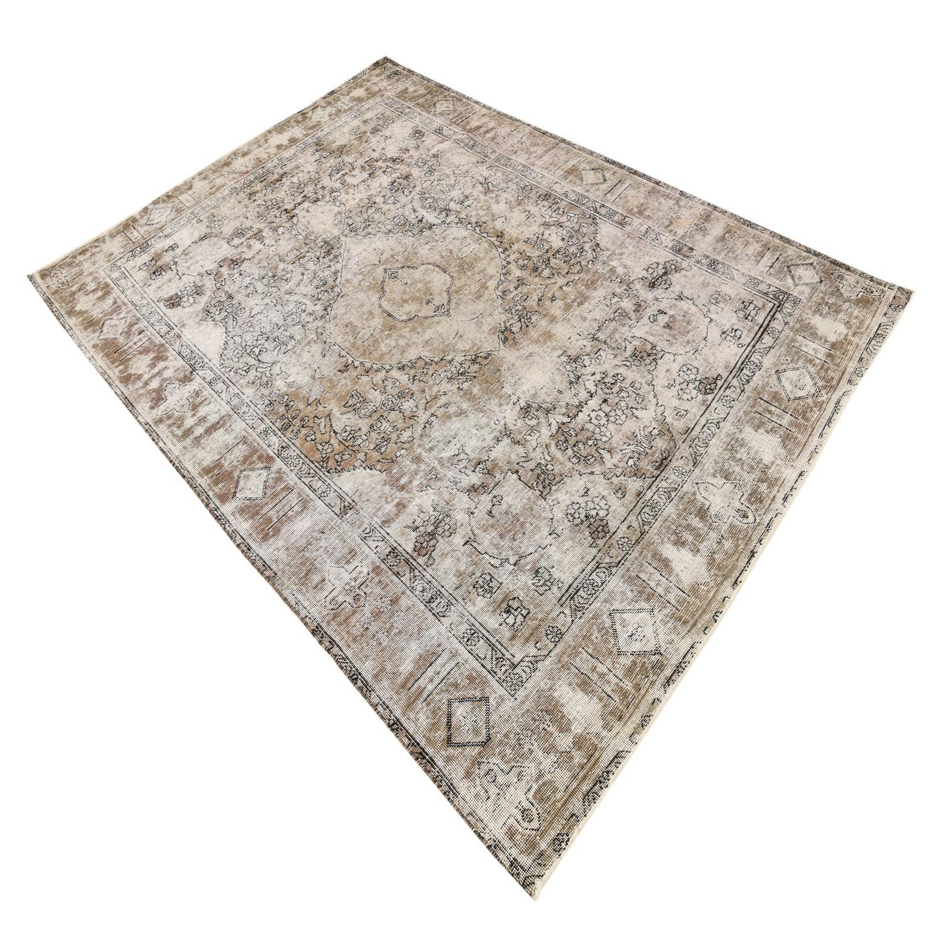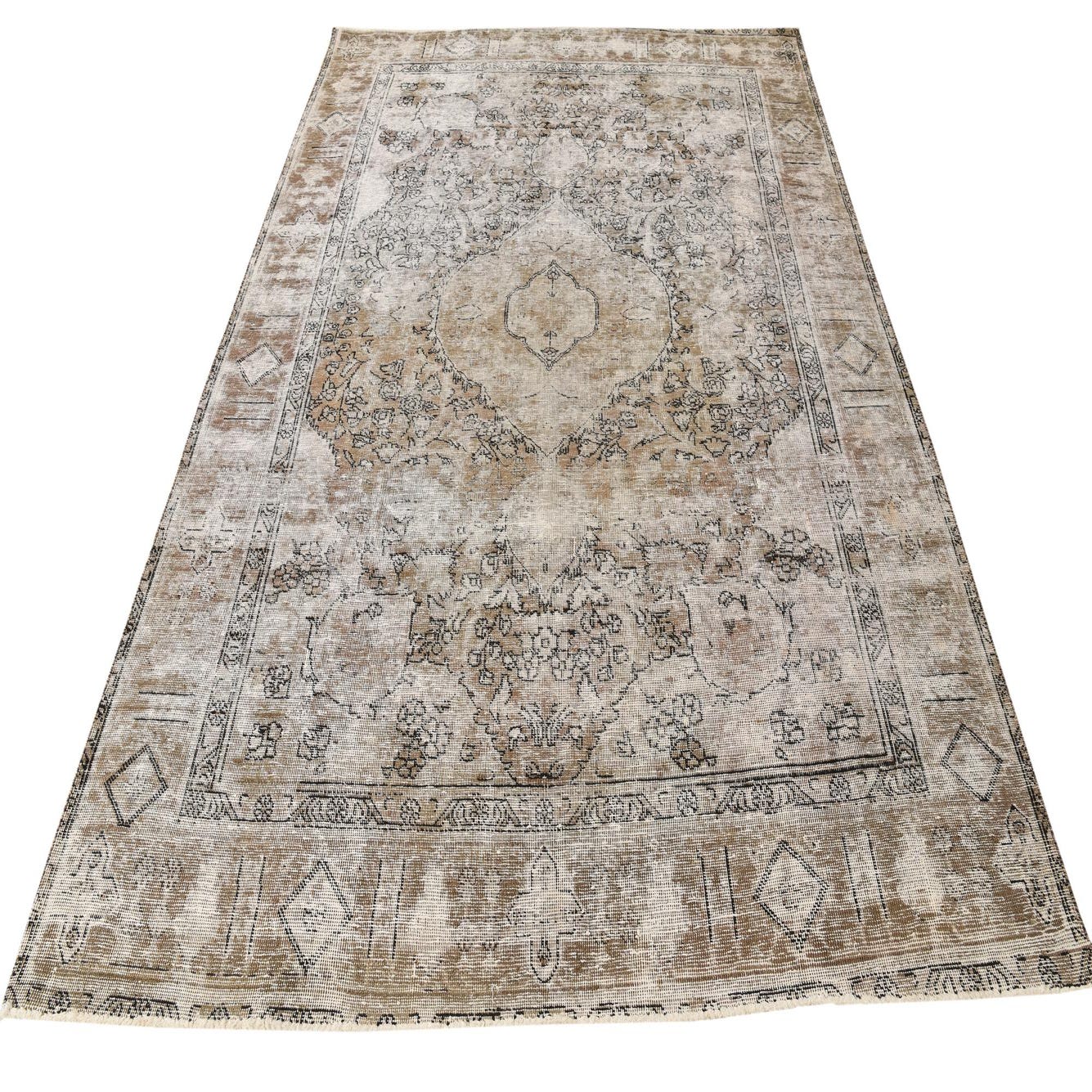 A 6x9 rectangular Ultra Vintage wool rug in browns, tans, and creams with a distressed Persian medallion pattern.