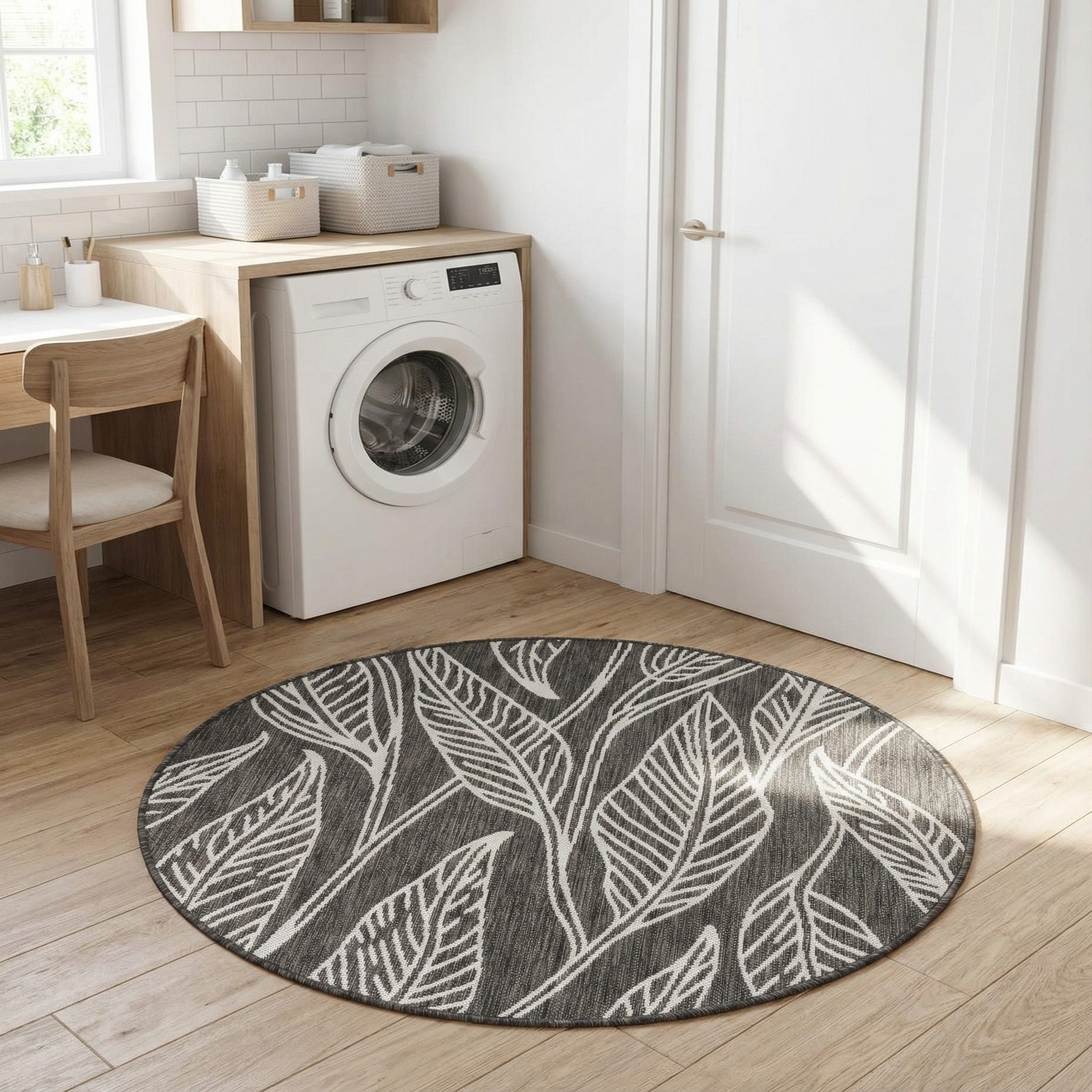 4' x 4' Washable Botanical Indoor / Outdoor Round Rug