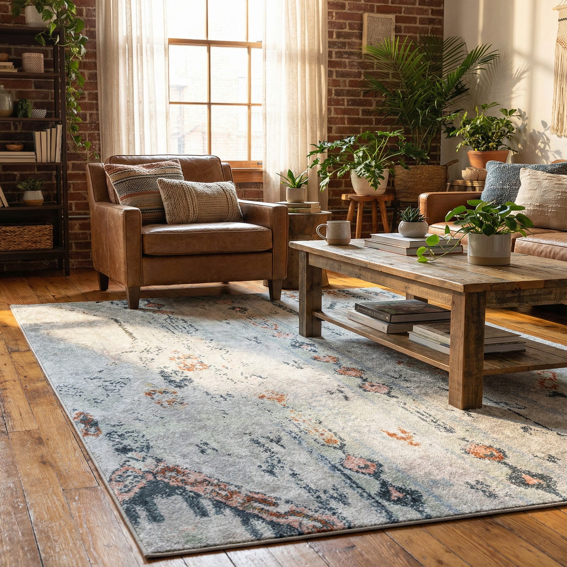 Primary color is Ivory Gray. Colors in this rug include: Ivory Gray, Rust Red.