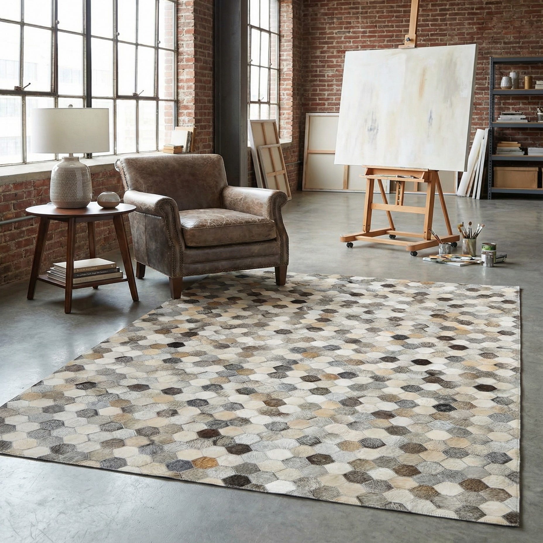 5' 3 x 8' Cowhide Leather Rug