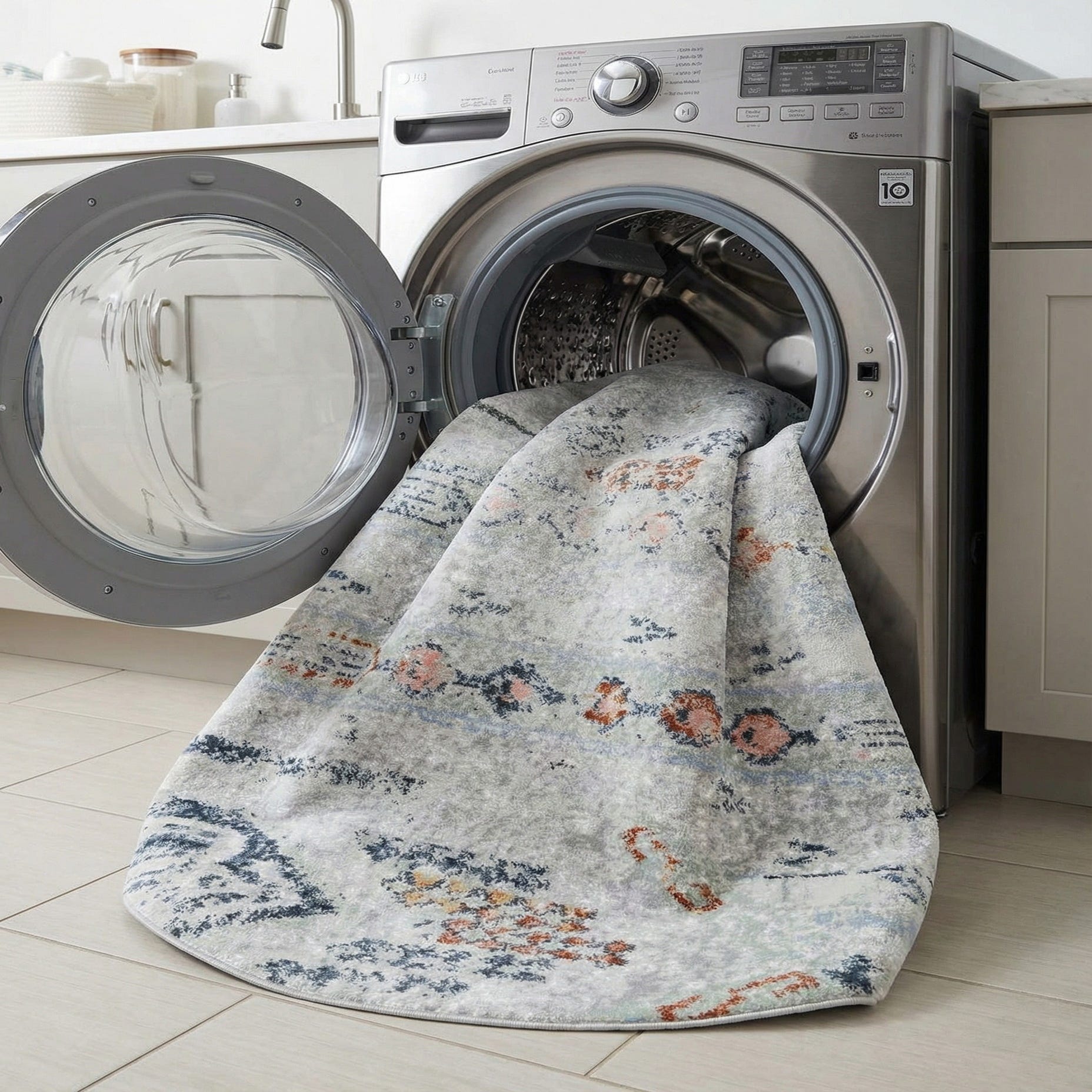 The texture of the rug is smooth to the touch, with a machine-woven construction that ensures a shed-free experience, making it an ideal choice for high-traffic areas. Its stain-resistant quality, coupled with being pet-friendly and machine washable, ensures this piece is a functional asset for homes that value both style and practicality.