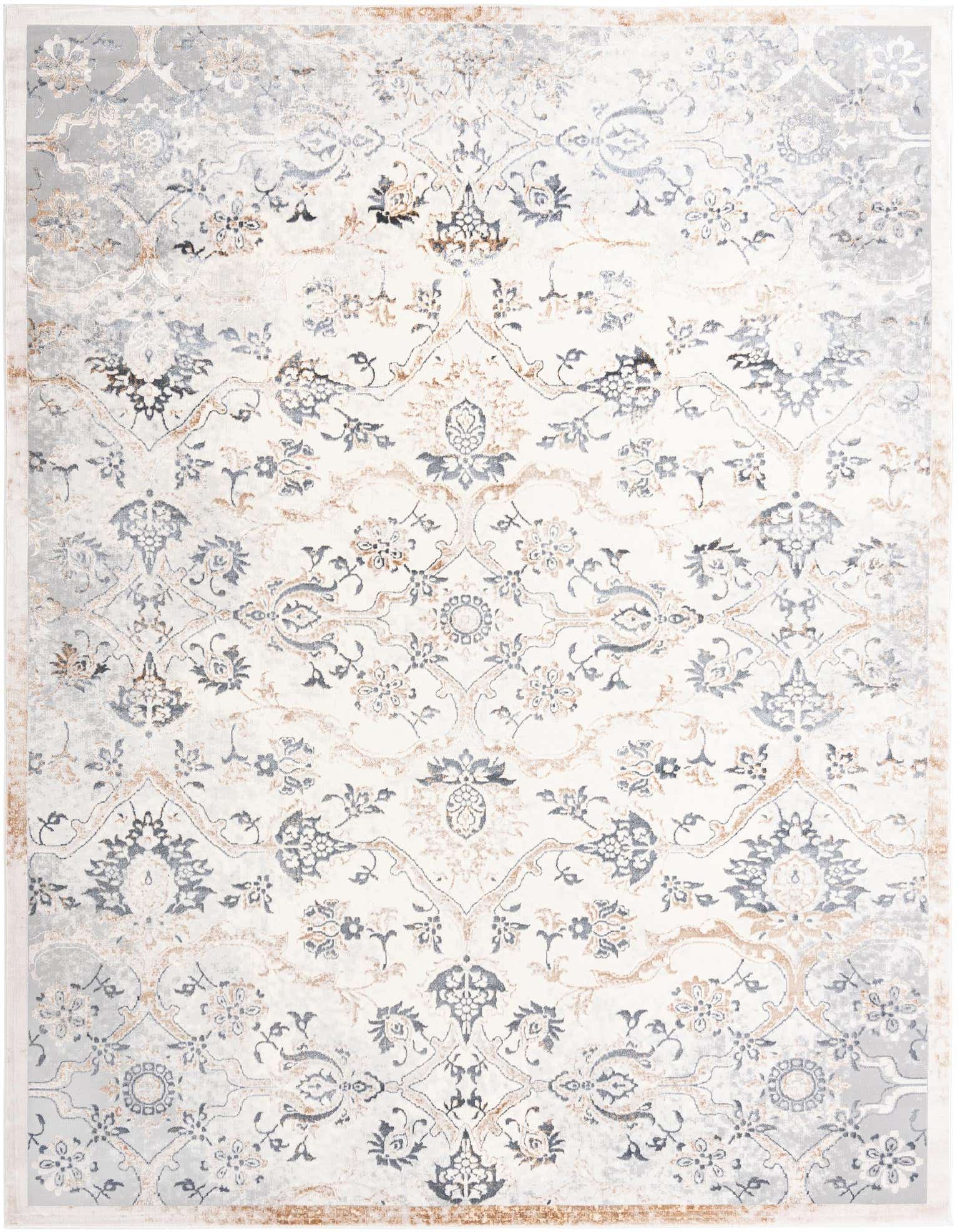 Primary color is Ivory Gray. Colors in this rug include: Ivory Gray, Black, Light Brown.