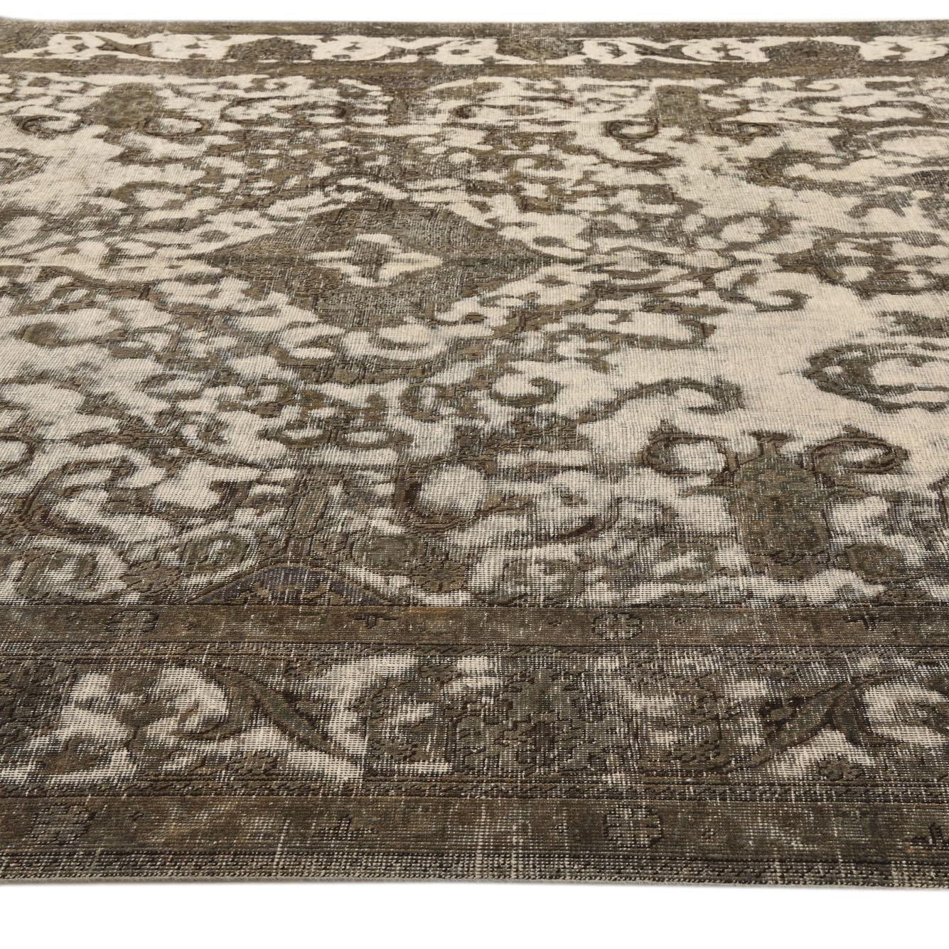 This Persian Ultra Vintage rug is an antique Persian Rug that has been washed, over-dyed, and then shaved down to a low pile. Look at the detail pictures to fully appreciate the uniqueness of this piece.