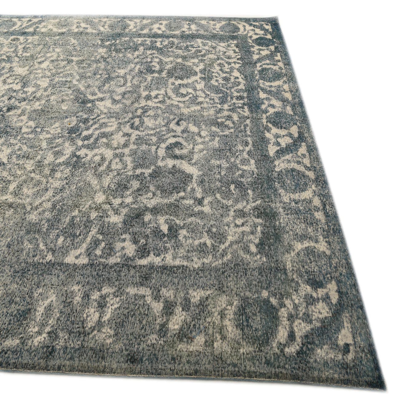 A 10x13 rectangular blue and ivory Ultra Vintage wool rug with an abstract Persian pattern and border.