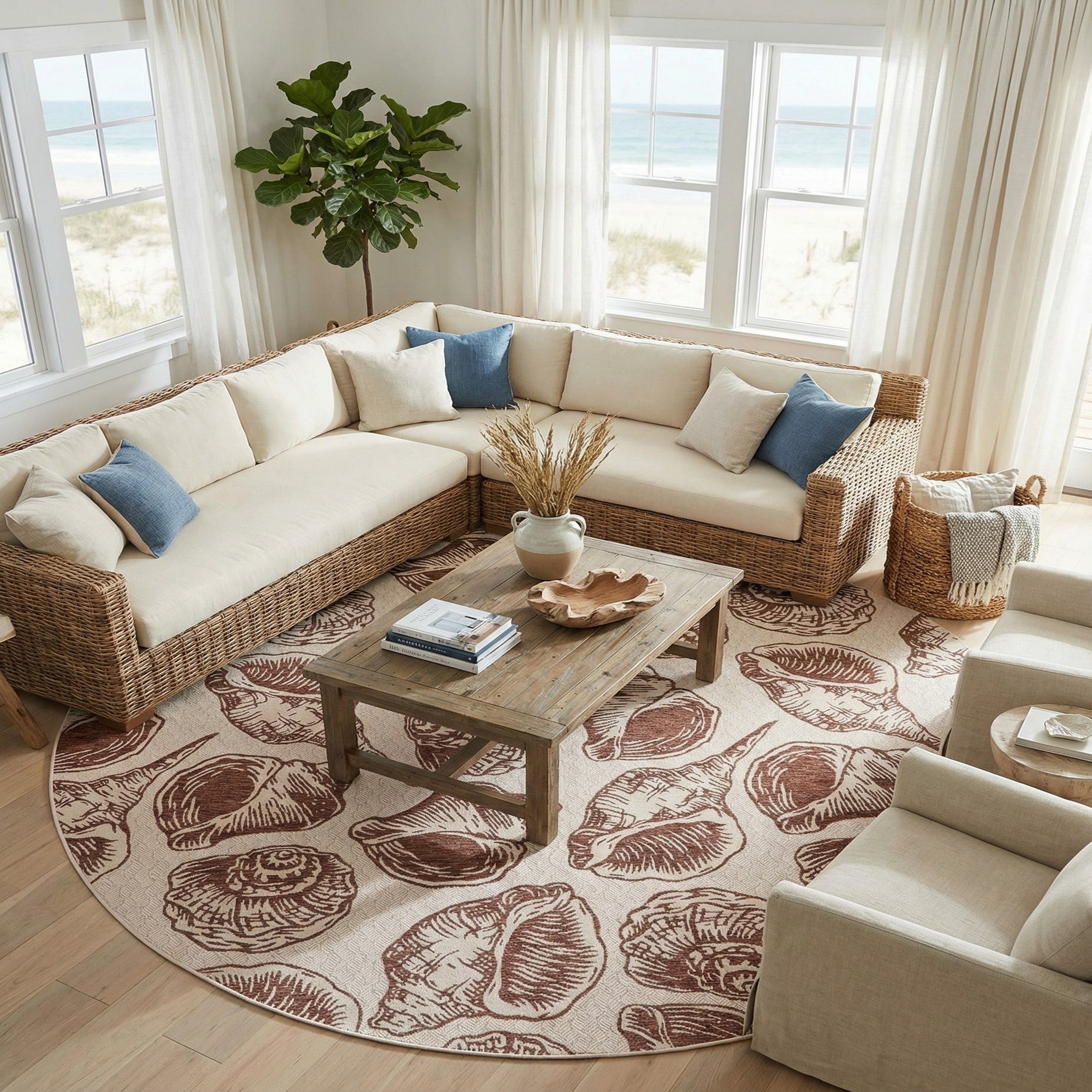 Primary image  13' x 13'  Washable Coastal Indoor / Outdoor Round Rug
