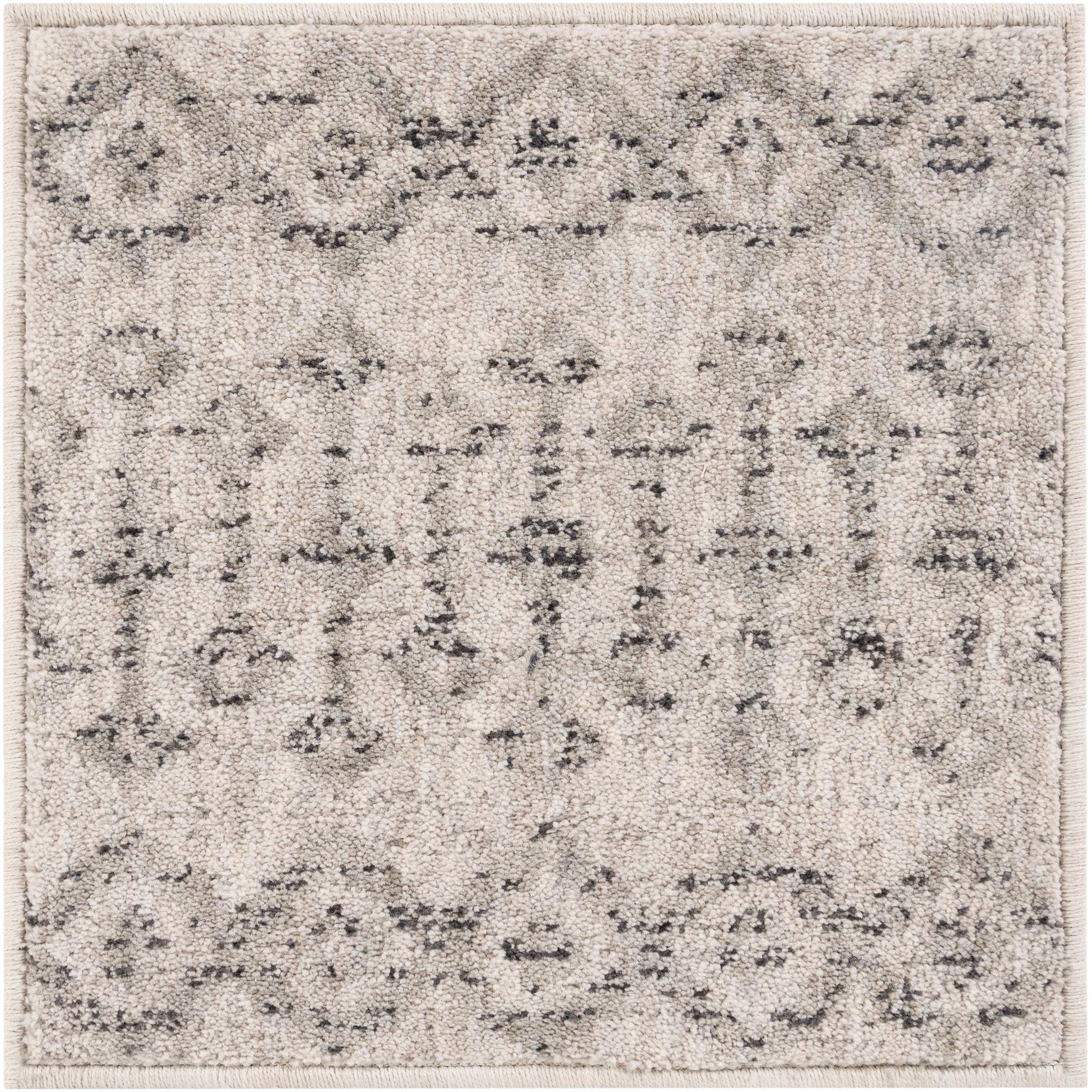 Primary color is Ivory. Colors in this rug include: Ivory, Black, Gray.