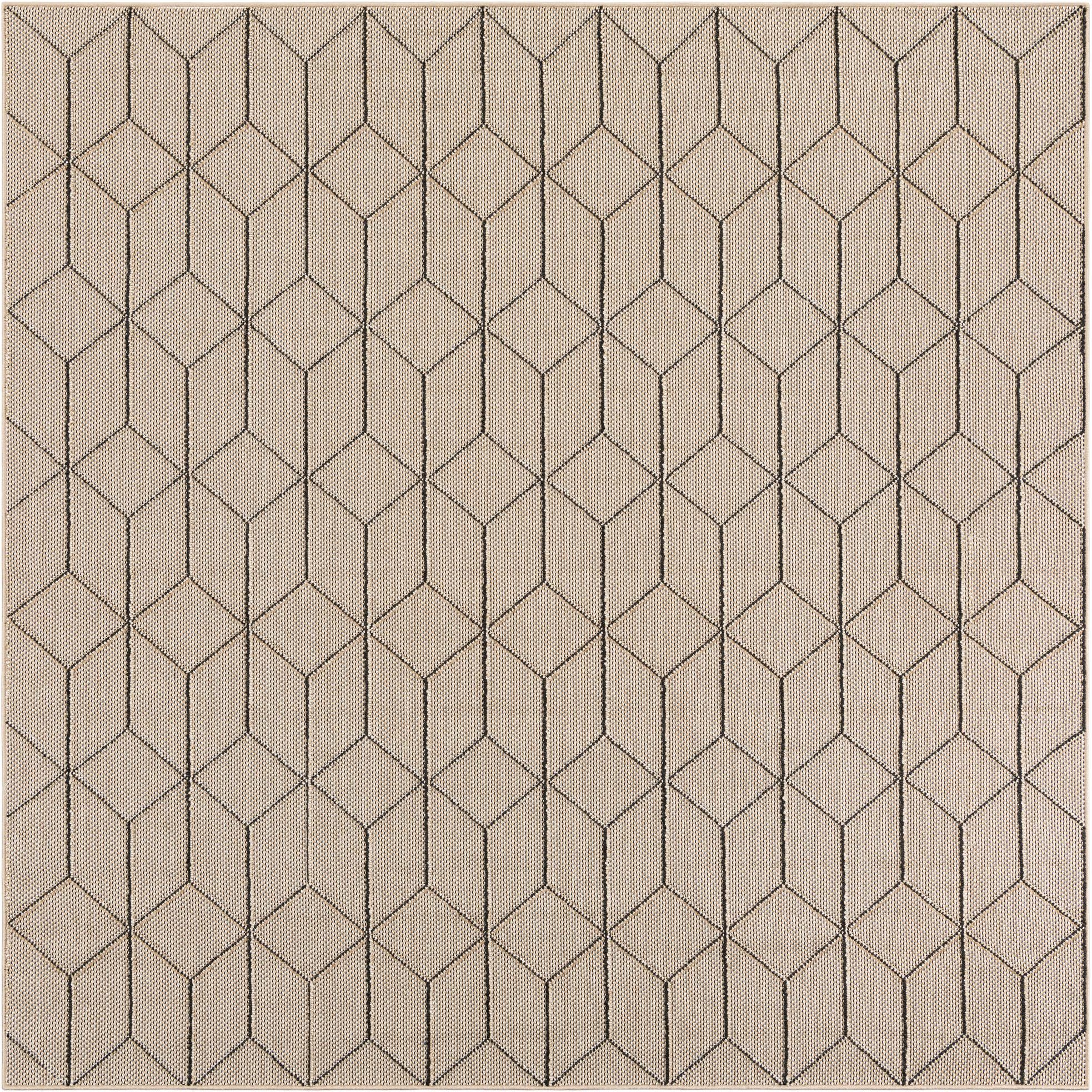 The Outdoor Lattice Collection presents a 8-foot square area rug crafted from 100% Polypropylene, designed to enhance outdoor living spaces with its durability and style. This rug showcases a geometric lattice pattern in contrasting shades of khaki and black, which adds visual interest without overwhelming the space. The background color of khaki provides a neutral base that complements a wide range of furniture and decor styles.