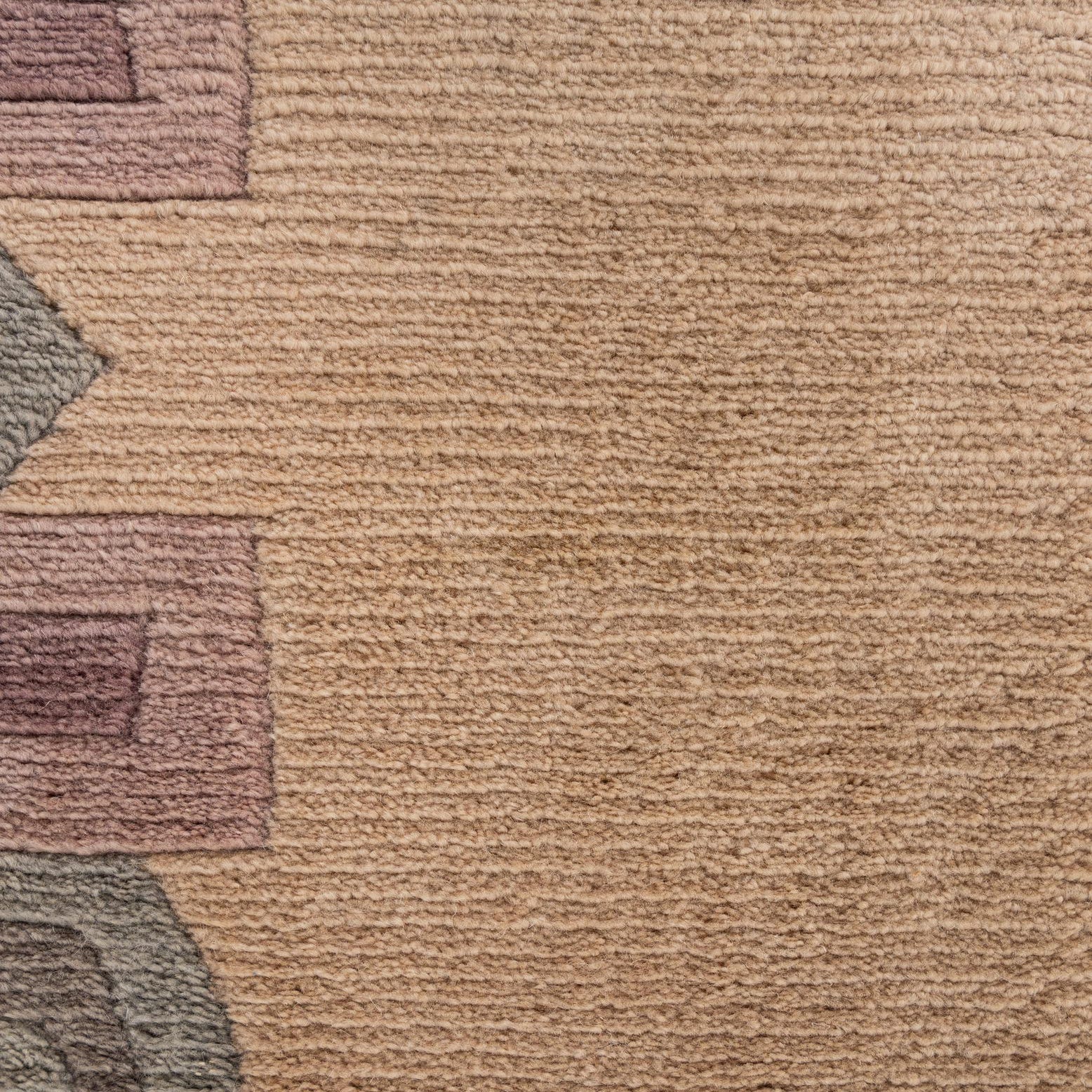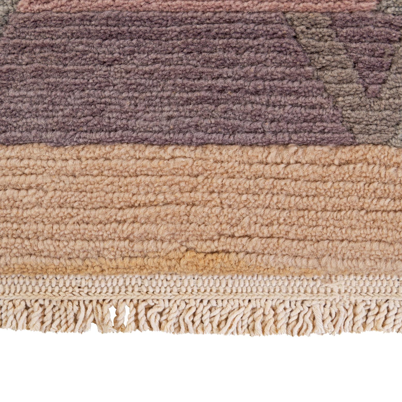 Primary color is Khaki. Colors in this rug include: Khaki, Gray, Purple, Violet.