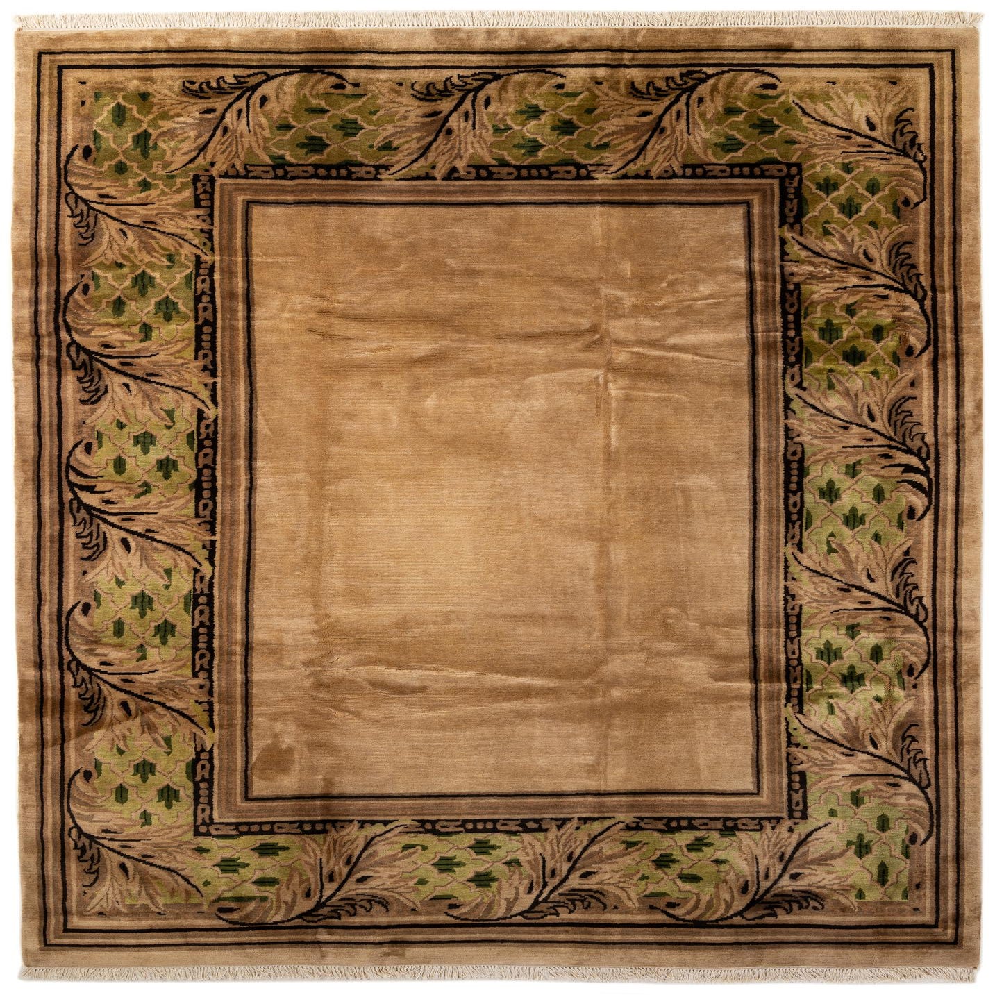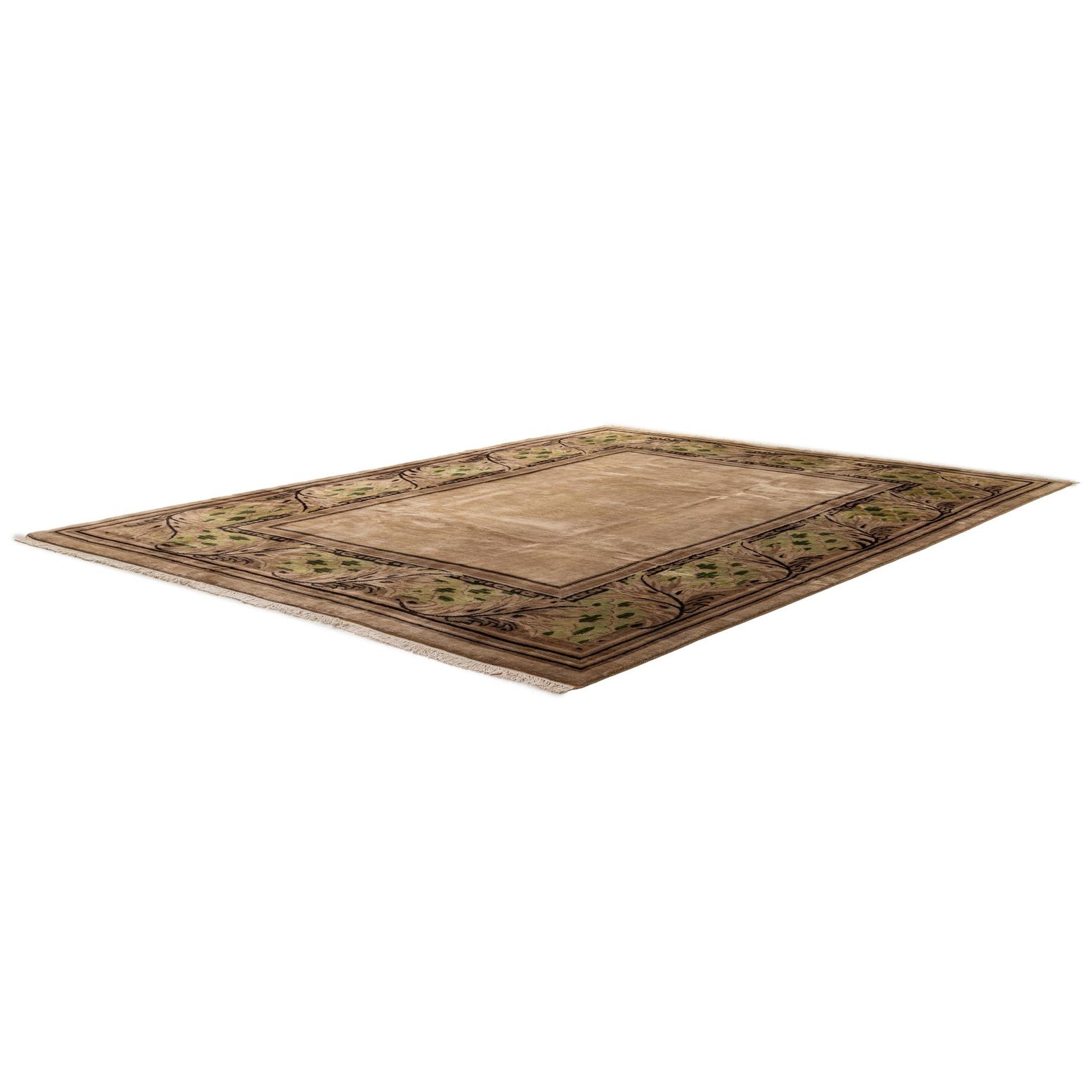 Primary color is Khaki. Colors in this rug include: Khaki, Beige, Brown, Green, Ivory, Light Green.