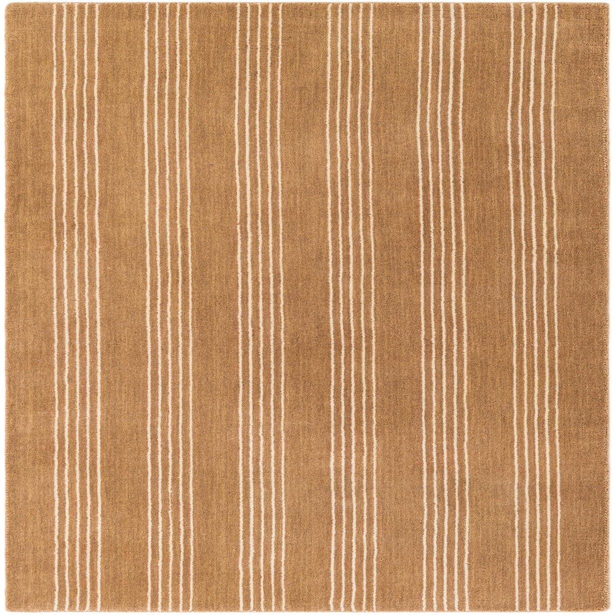 A 3x5 rectangular brown and ivory striped wool rug with a medium pile, suitable for an entryway.