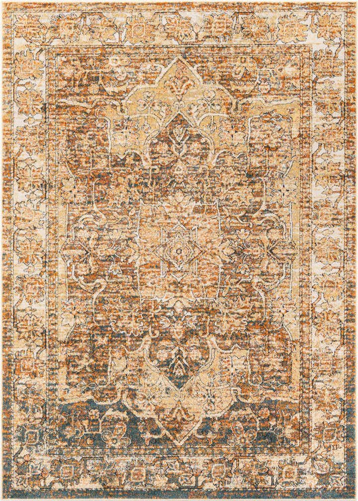 Primary color is LBrown Blue. Colors in this rug include: LBrown Blue, Beige, Blue, Brown, Orange, Ivory.