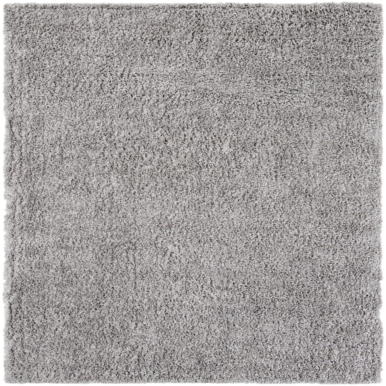 A 6x9 light grey rectangular shag rug with a soft, textured pile, perfect for a modern living room.