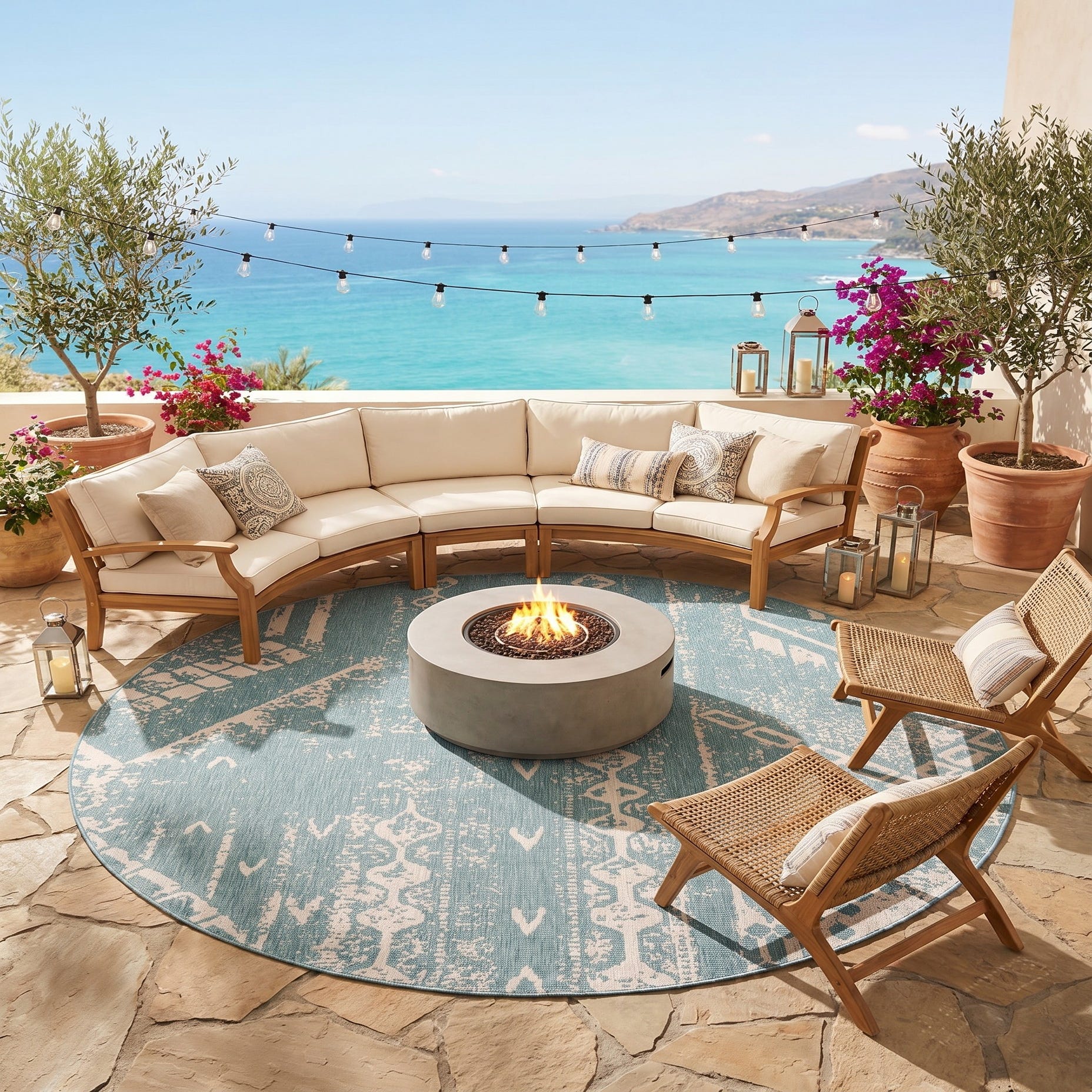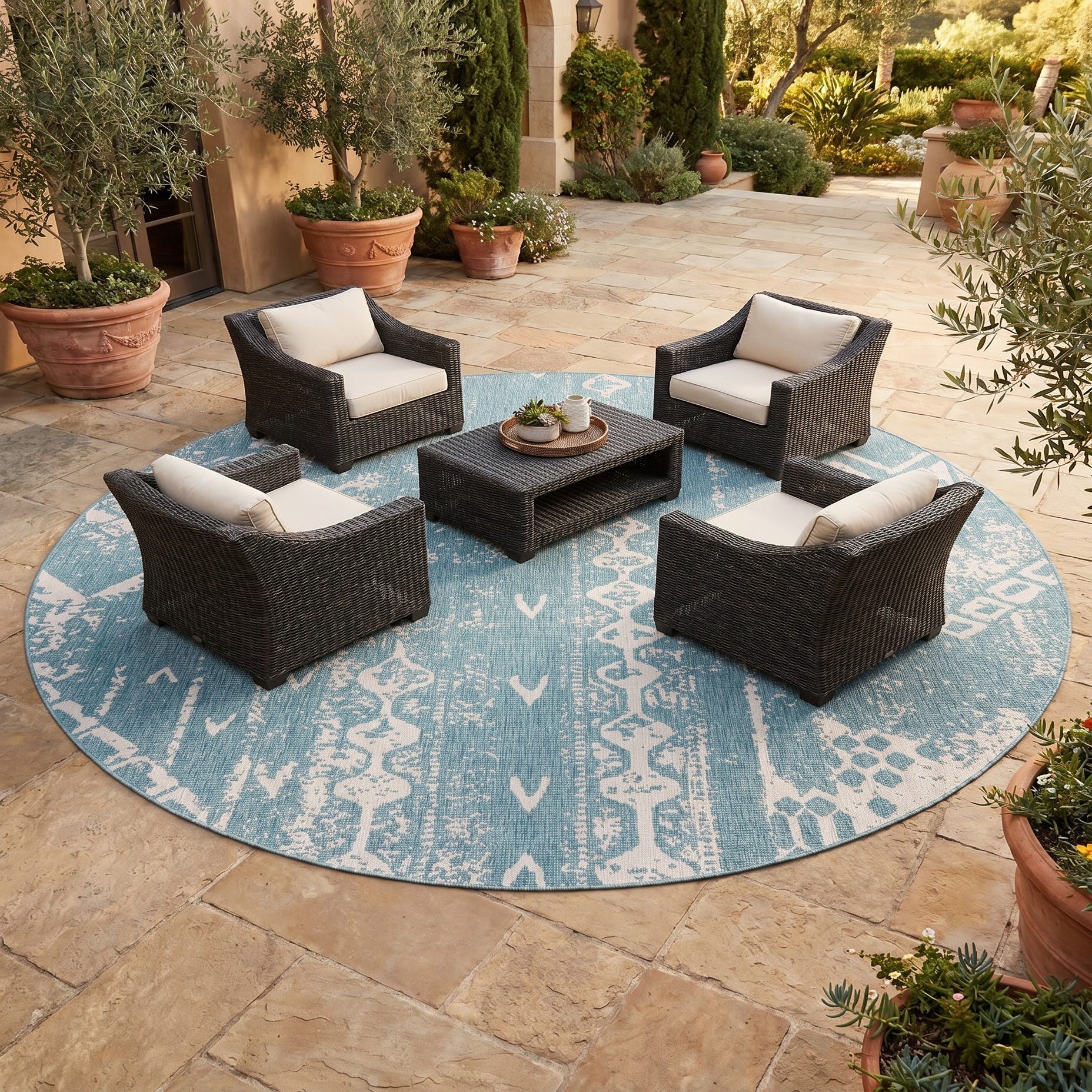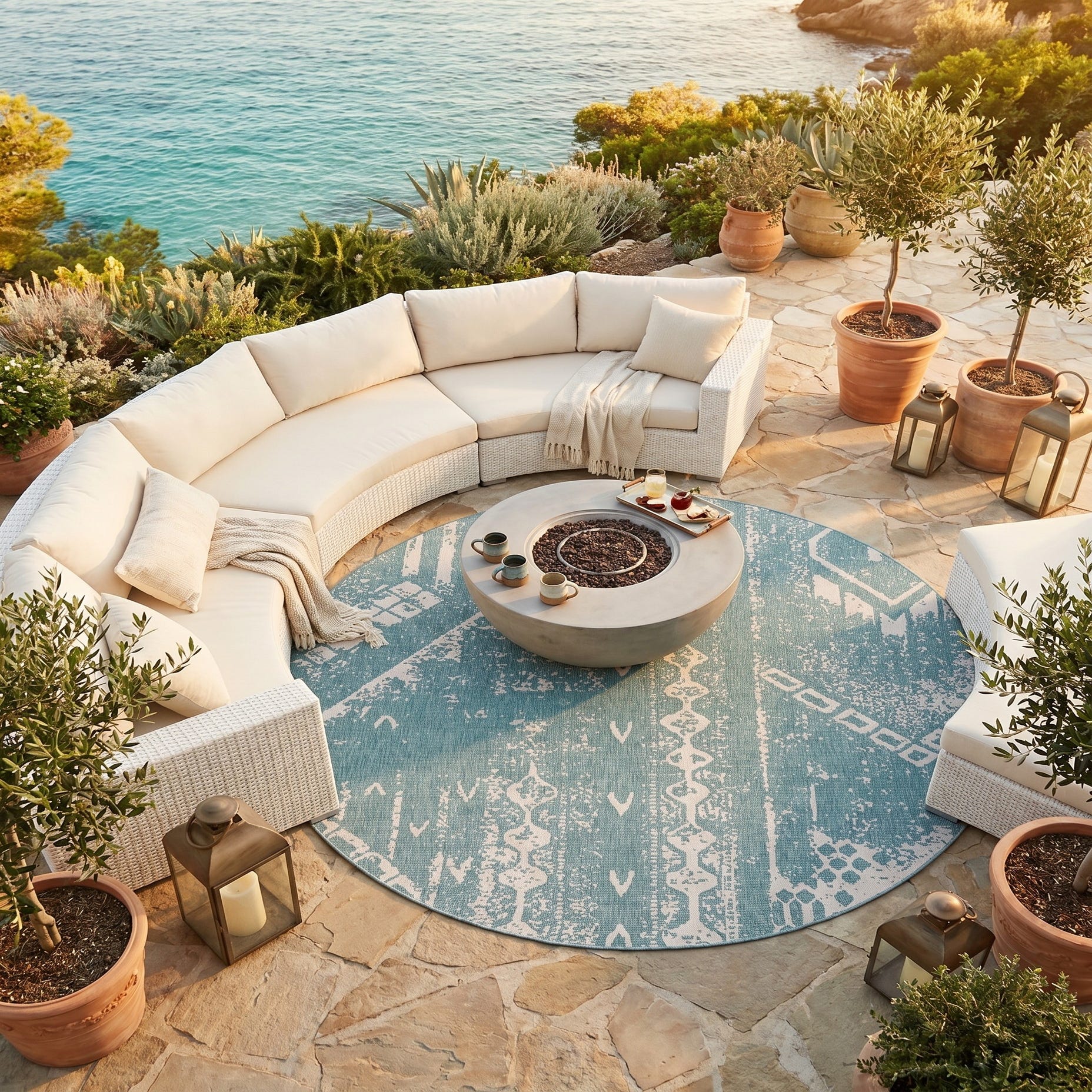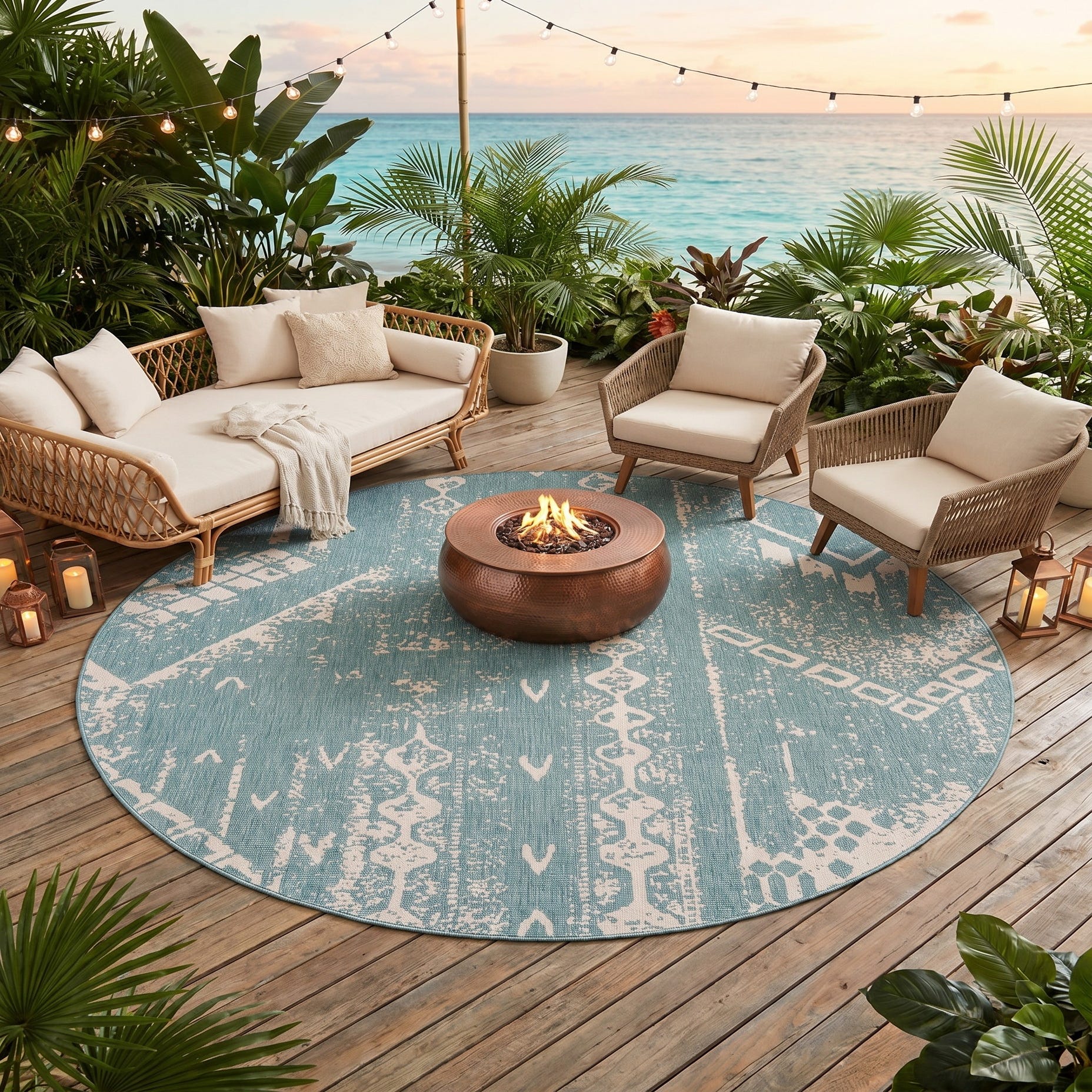 10' 8 x 10' 8 Easy-Clean Bohemian Indoor / Outdoor Round Rug