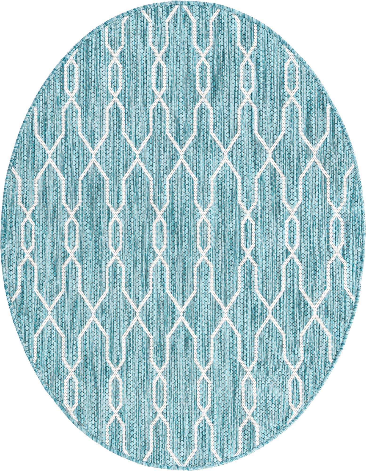 This Outdoor Lattice rug, beautifully machine-woven from 100% polypropylene, boasts a versatile and refreshing palette of light aqua and ivory. The light aqua background contrasts subtly with the ivory lattice pattern, creating a look that is both timeless and contemporary. The design offers a geometrical dimension to any space, making the rug an attractive centerpiece.