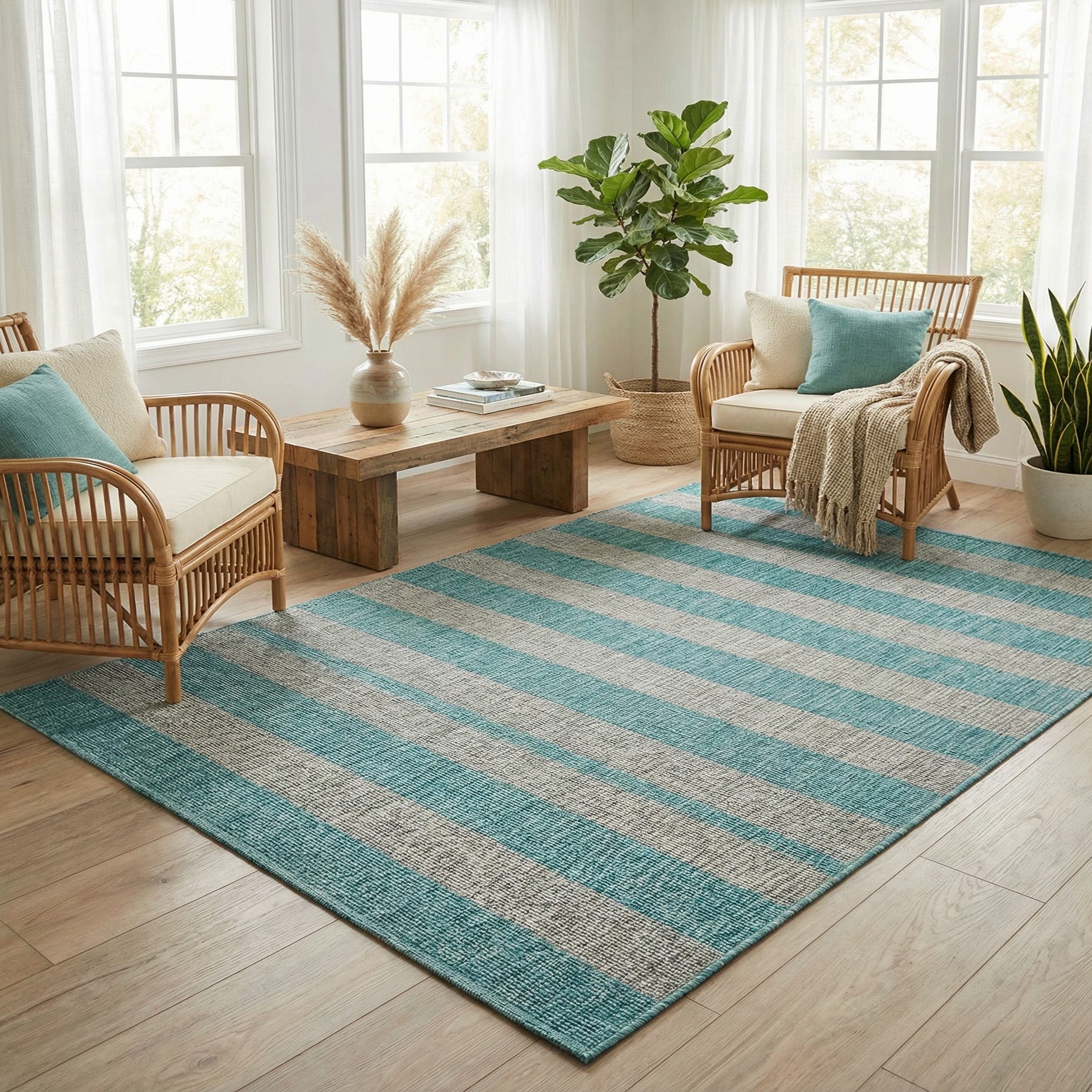 5' 3 x 8' Washable Ribbon Indoor / Outdoor Rug
