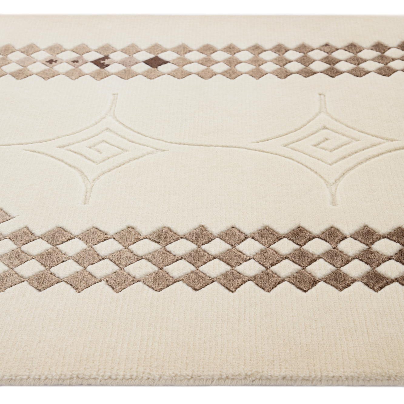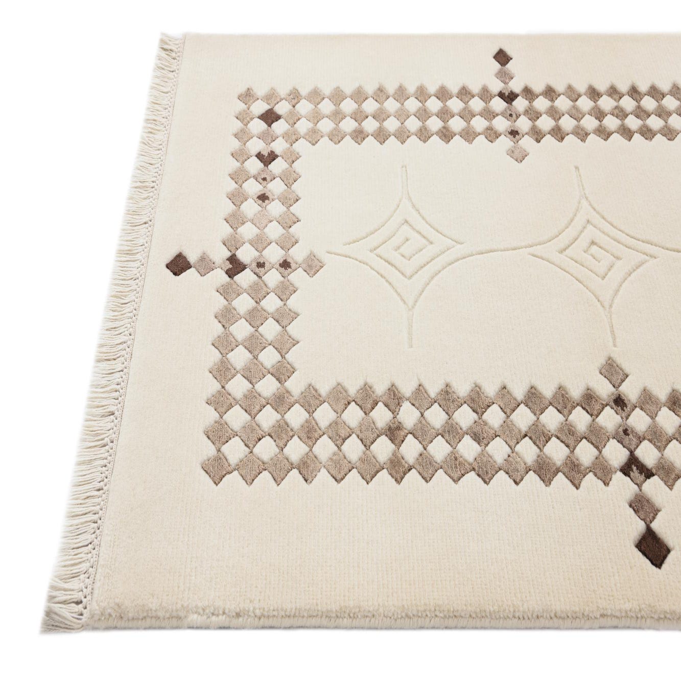Primary color is Light Beige. Colors in this rug include: Light Beige, Brown, Light Brown, Silver.