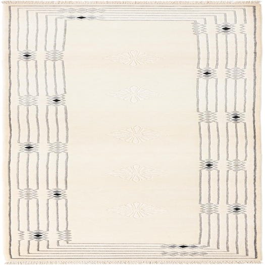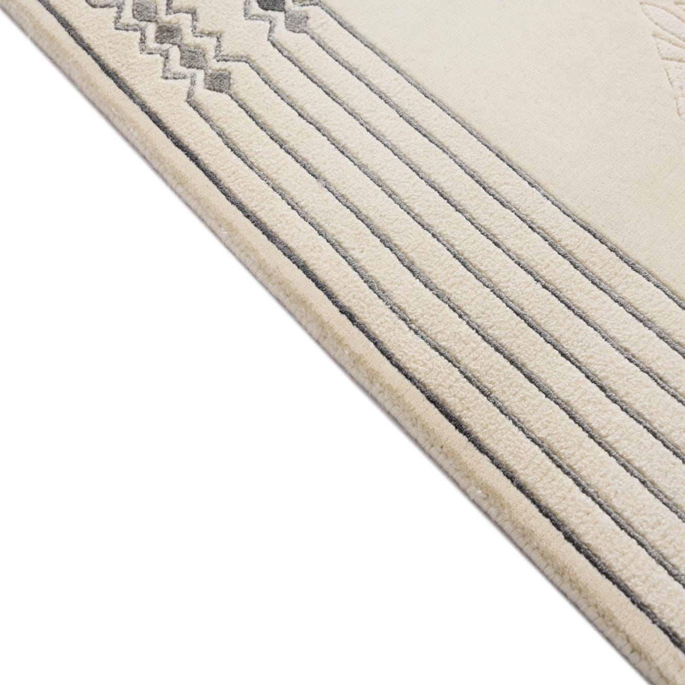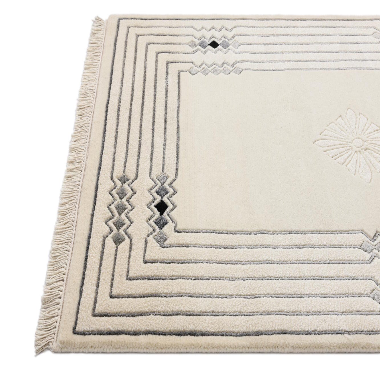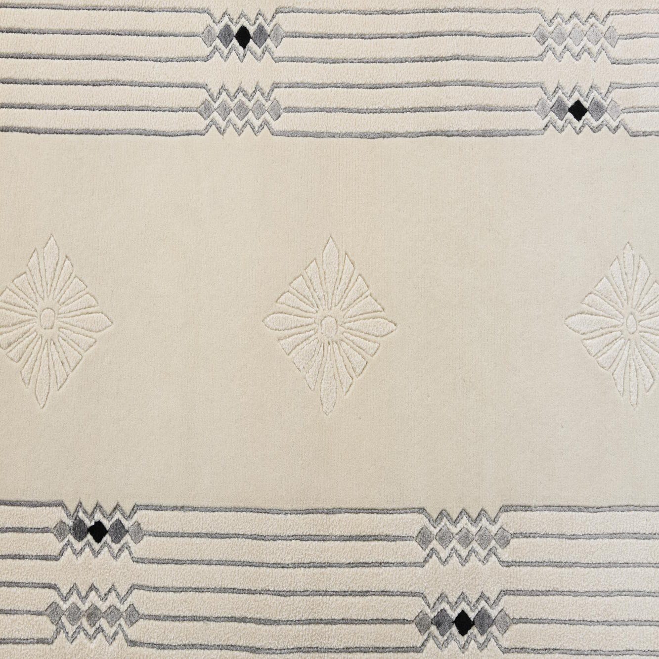 Primary color is Light Beige. Colors in this rug include: Light Beige, Black, Silver.