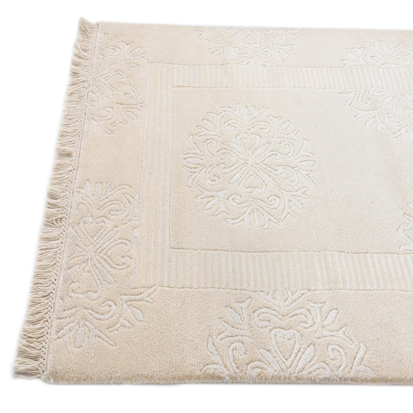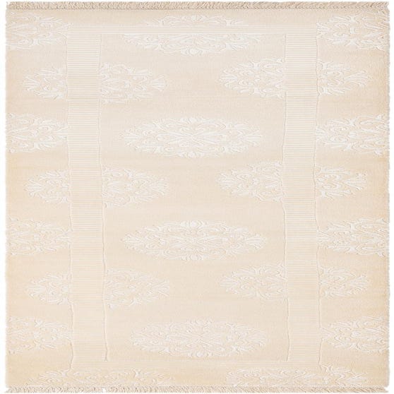 Primary color is Light Beige. Colors in this rug include: Light Beige, Cream, Ivory.