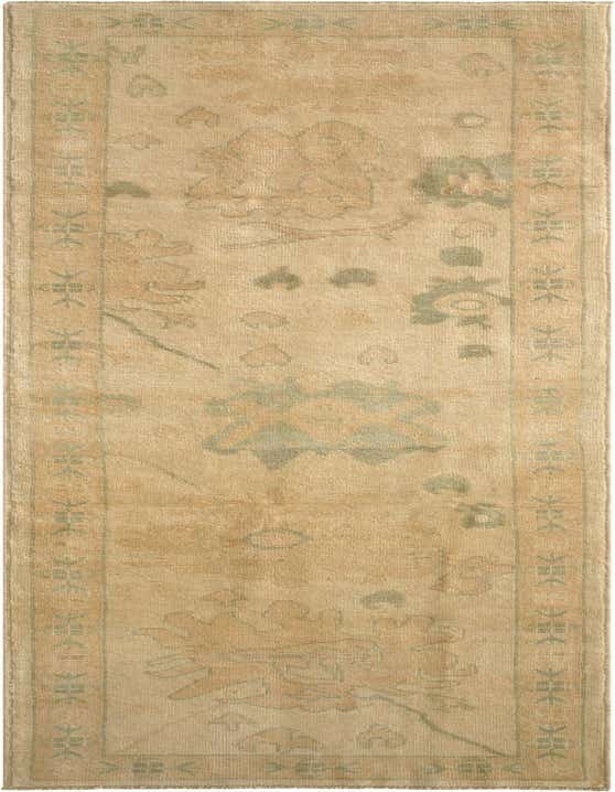 Primary color is Light Beige. Colors in this rug include: Light Beige, Green, Tan.