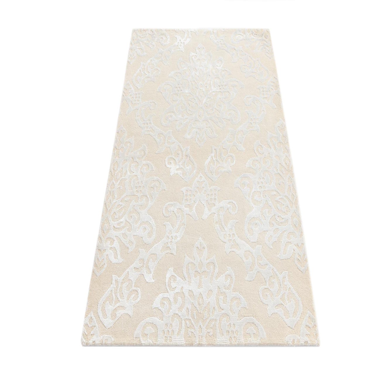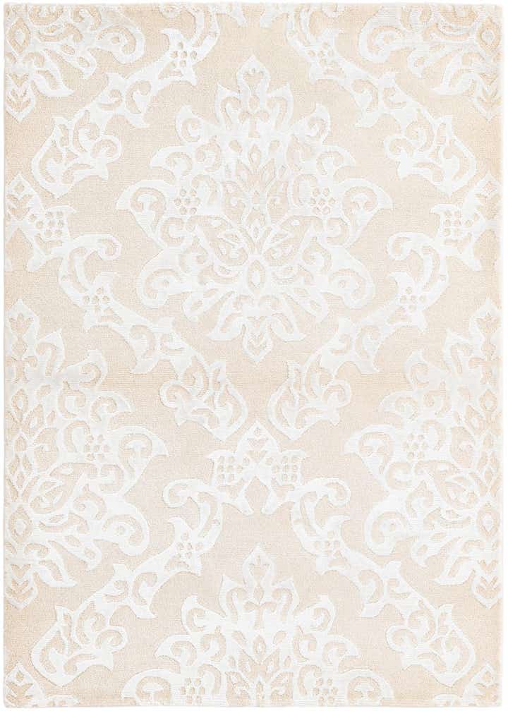 A graceful damask-inspired medallion pattern in cream and ivory floats across a Light Beige background, creating a calm, layered look that’s easy to coordinate. Hand-knotted in 100% wool, the design is worked in a low-and-high pile so the motifs sit slightly raised against a softer ground. Run your hand across the surface and you’ll feel a plush, velvety texture with gentle resilience beneath your fingertips, giving the rug a tactile presence as well as visual interest.