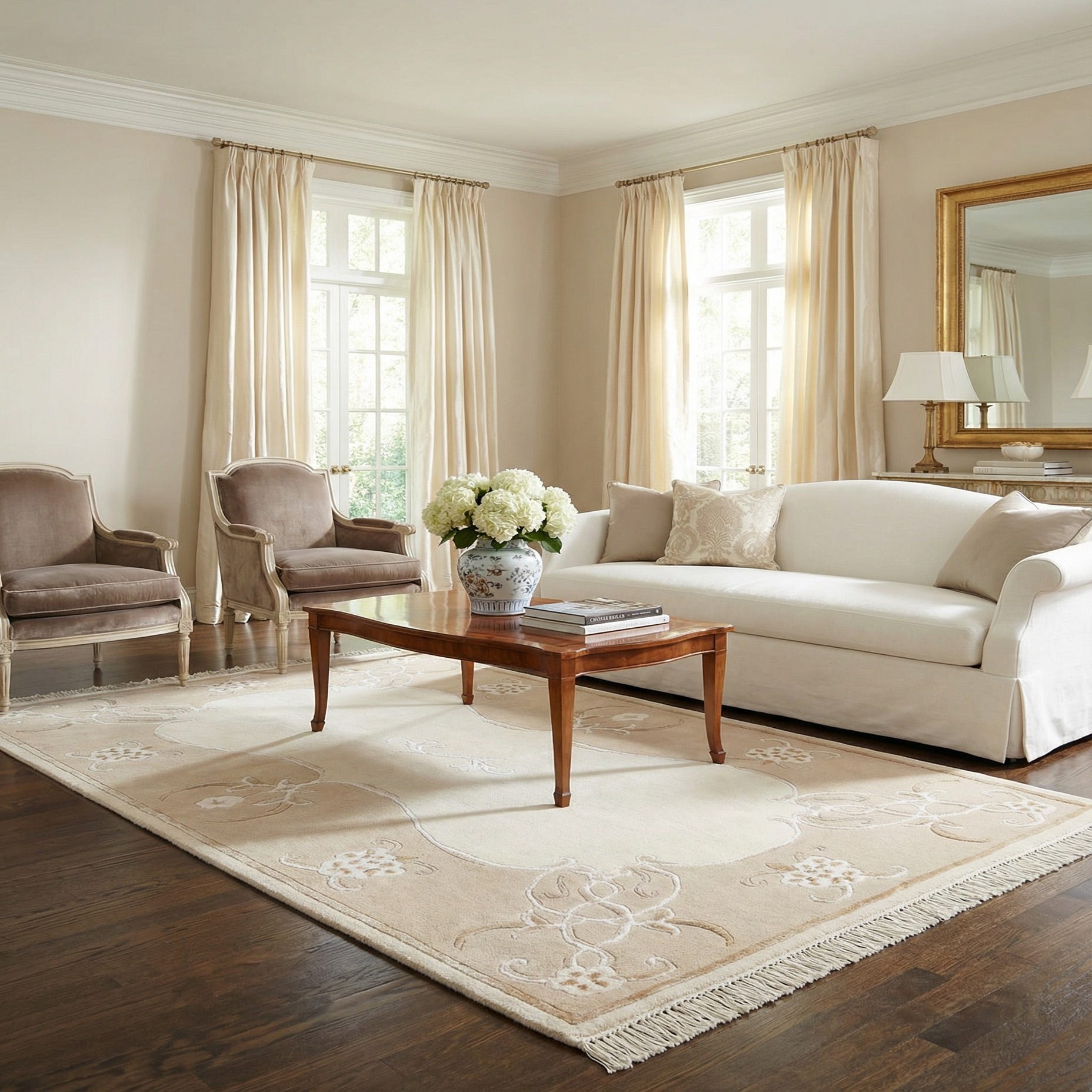 Primary color is Light Beige. Colors in this rug include: Light Beige, Beige, Ivory, Brown, Light Brown, Tan.