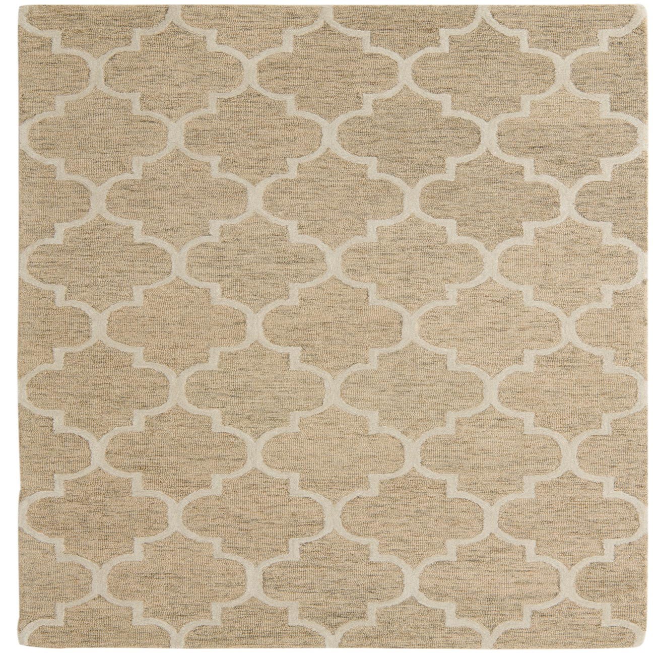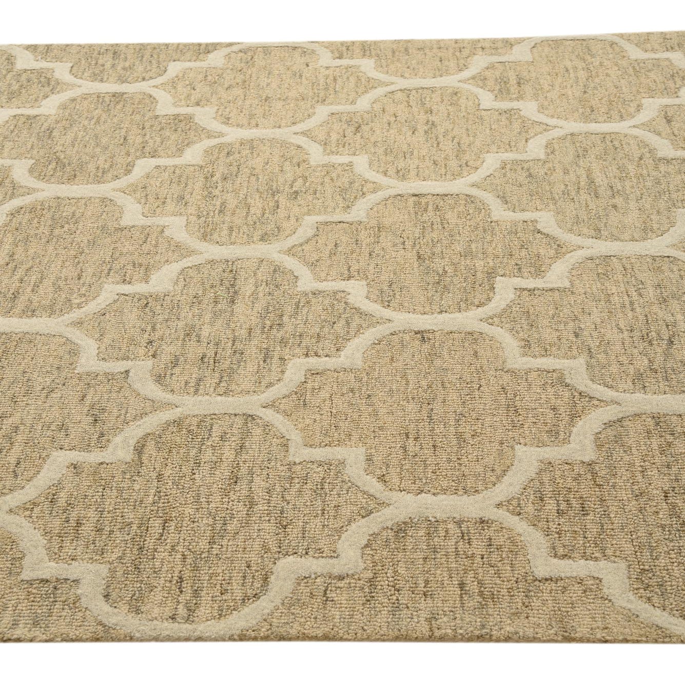 The Luna collection presents a 5x8 hand-tufted rug crafted from a blend of wool and cotton, providing a plush and durable surface. The design showcases a subtle yet engaging pattern of interconnected geometric shapes, rendered in a soothing palette of light beige and ivory. The background color of light beige offers a versatile base, while the ivory outlines of the shapes add a gentle contrast, creating a sophisticated and contemporary aesthetic.