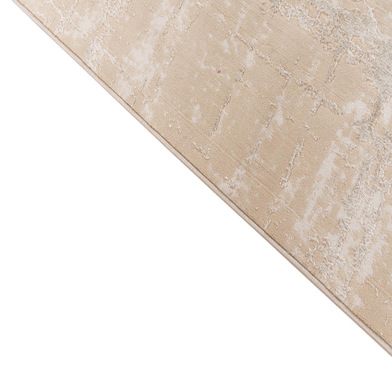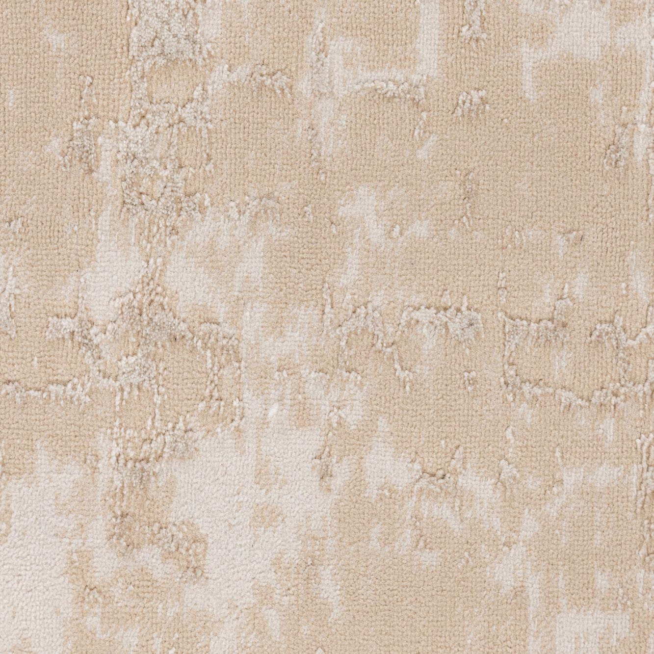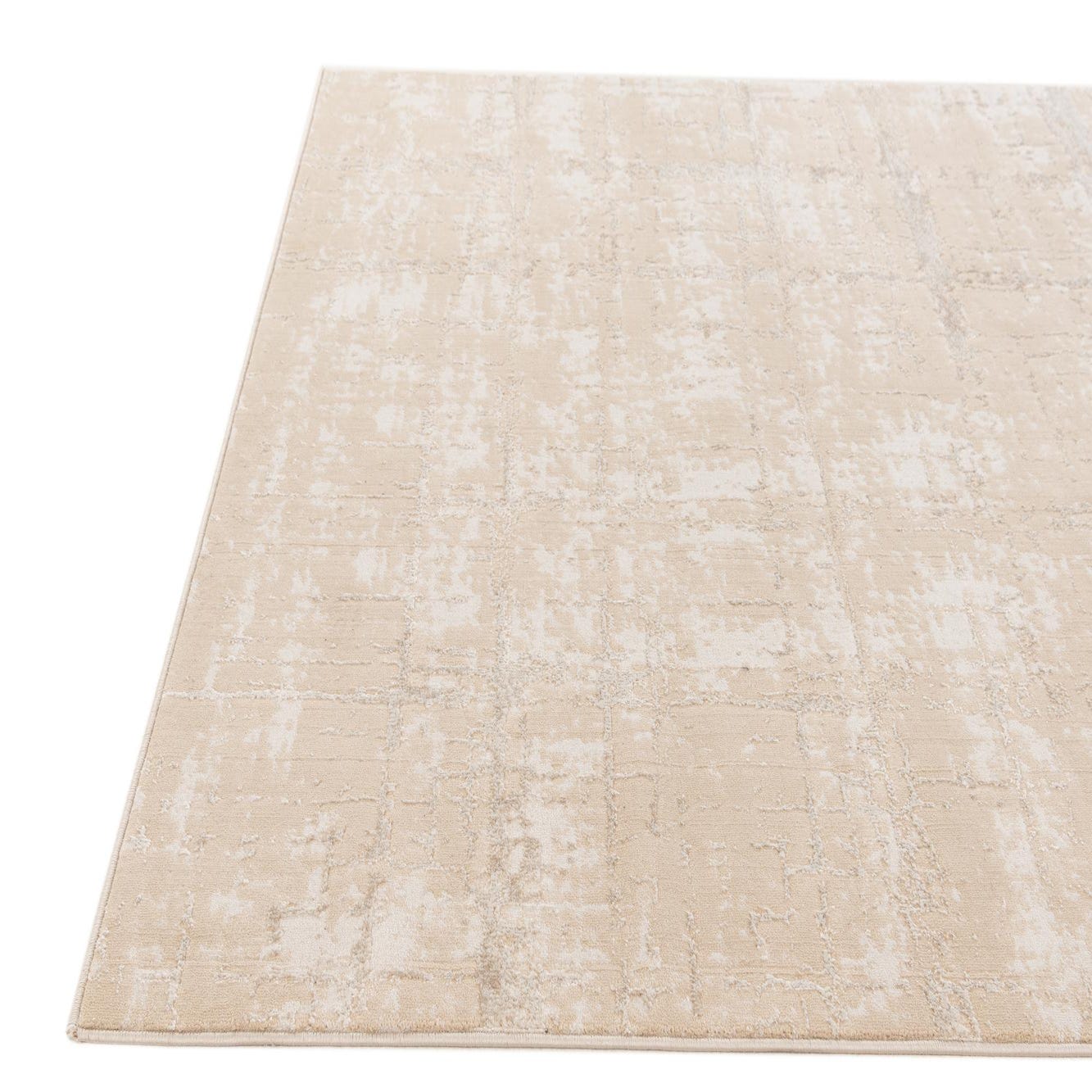 A 5x8 rectangular modern abstract rug in shades of ivory and cream, featuring a distressed pattern.