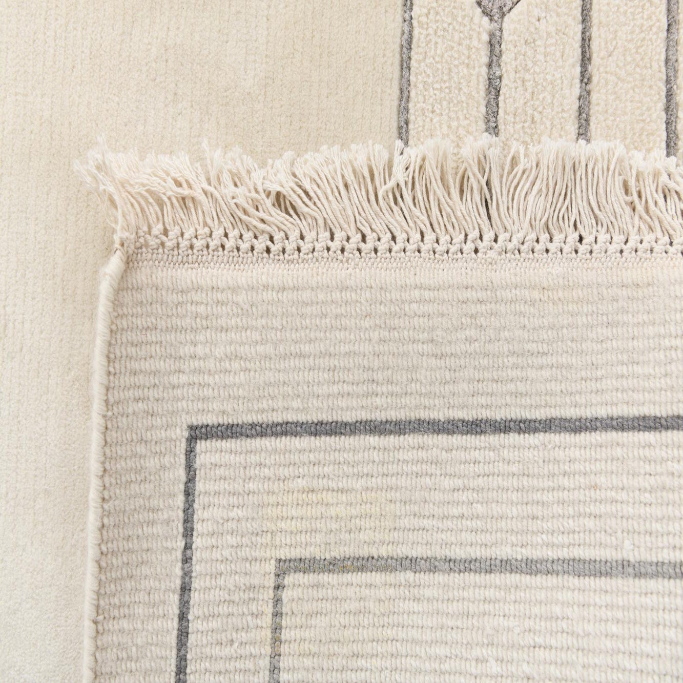 The rug's clean lines and minimalistic color palette make it a versatile addition to a variety of interior design themes. It can seamlessly integrate into a contemporary or minimalist setting, complementing sleek furnishings and modern decor. The neutral tones also allow it to serve as a grounding element in a Scandinavian-inspired space, emphasizing natural materials and a sense of serenity. Similarly, the rug's simple elegance and quality materials are well-suited to a transitional space where classic and modern elements coalesce.