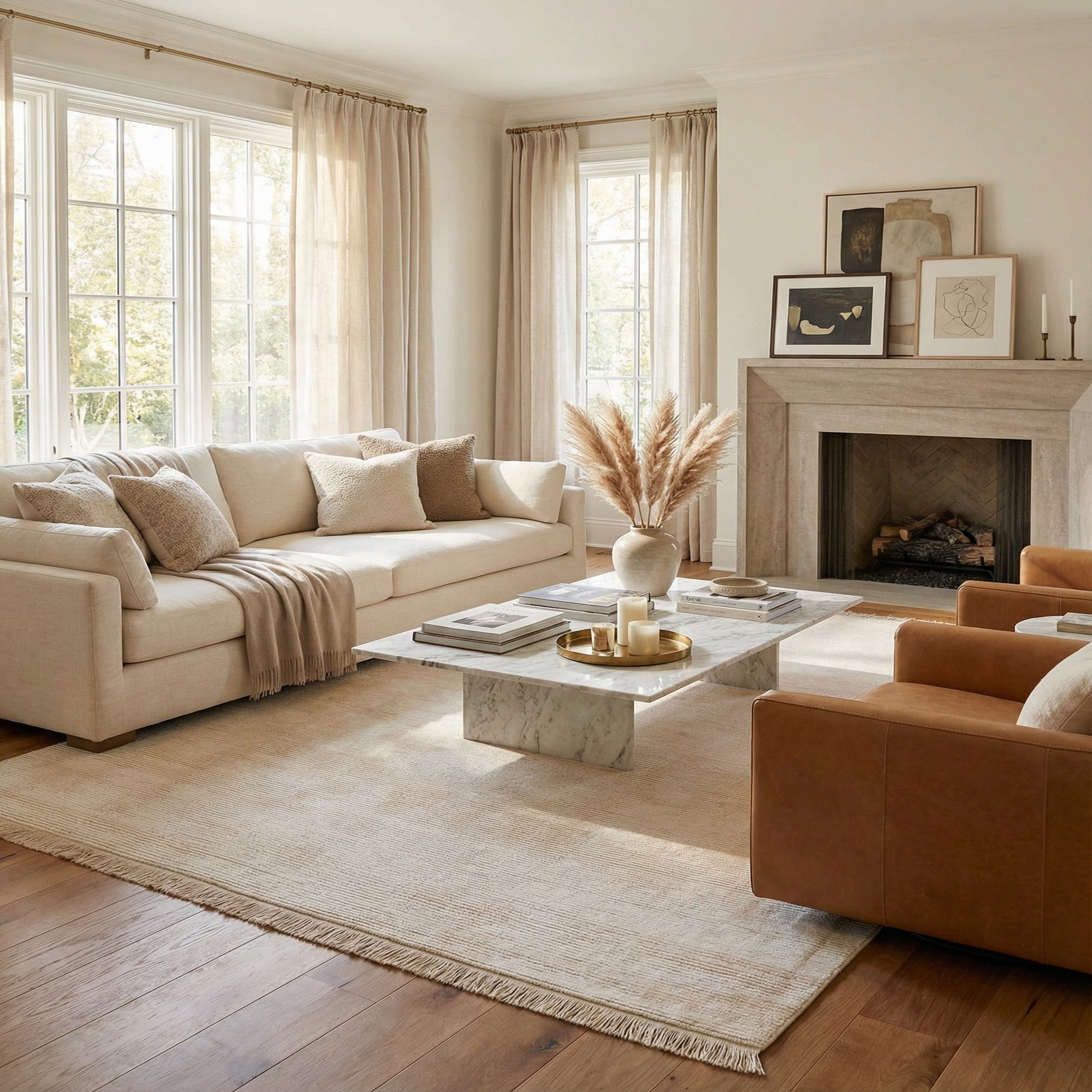 With its light beige background, this rug promises a seamless integration into existing decors, complementing natural wood elements, metallic accents, and a range of upholstery fabrics. This piece is well-suited for contemporary, minimalist, or Scandinavian-inspired spaces, where its muted tones and subtle pattern contribute to a calming, uncluttered ambiance.