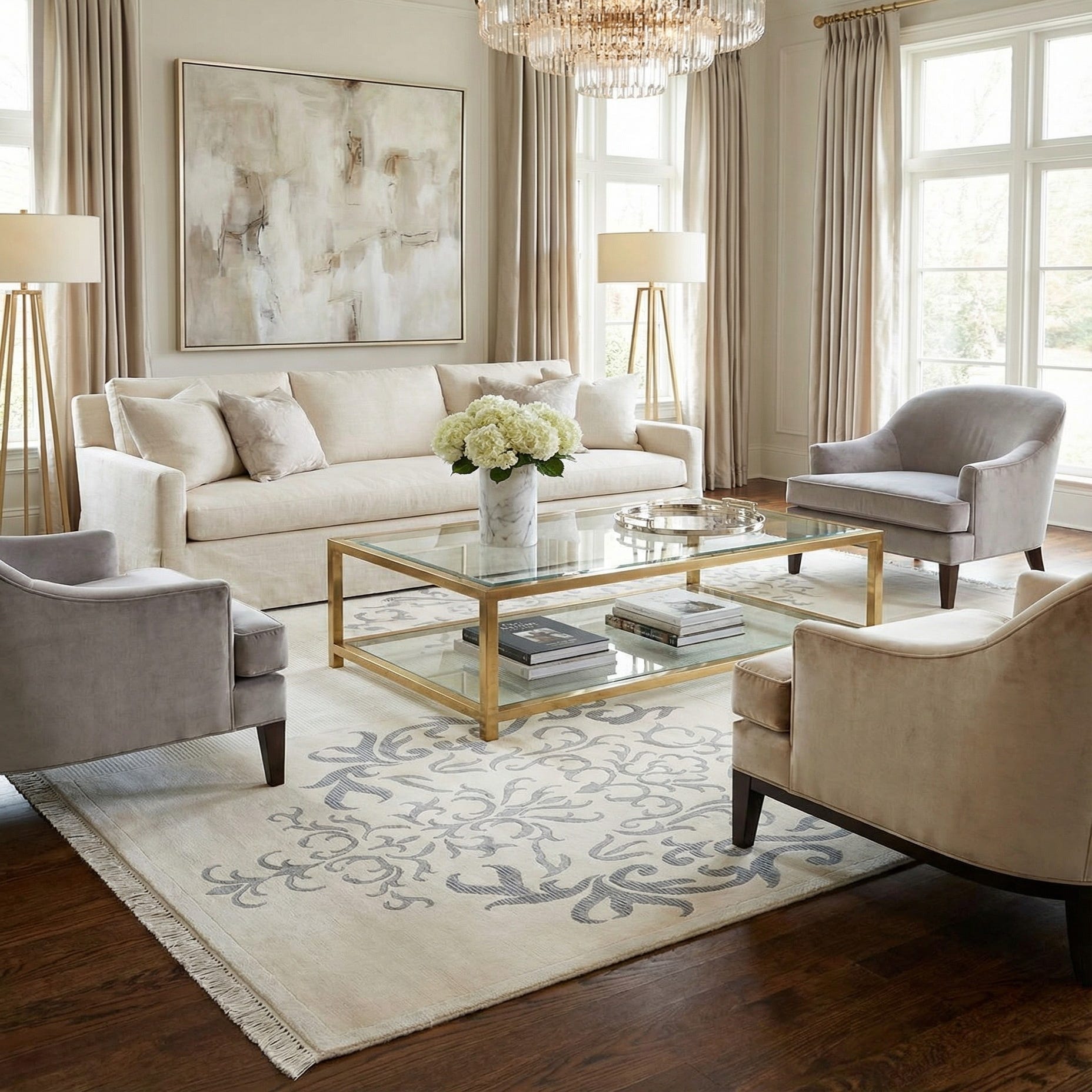 With its neutral tone and sophisticated design, this rug would be a harmonious addition to a living room, bedroom, or dining area within traditional or transitional interiors. It also offers enough versatility to serve as a calming anchor in a minimalistic or Scandinavian-inspired space. The Darya rug's timeless pattern and serene color scheme can effortlessly blend with furniture in natural wood tones, or provide a soft contrast to modern metallic and glass elements.
