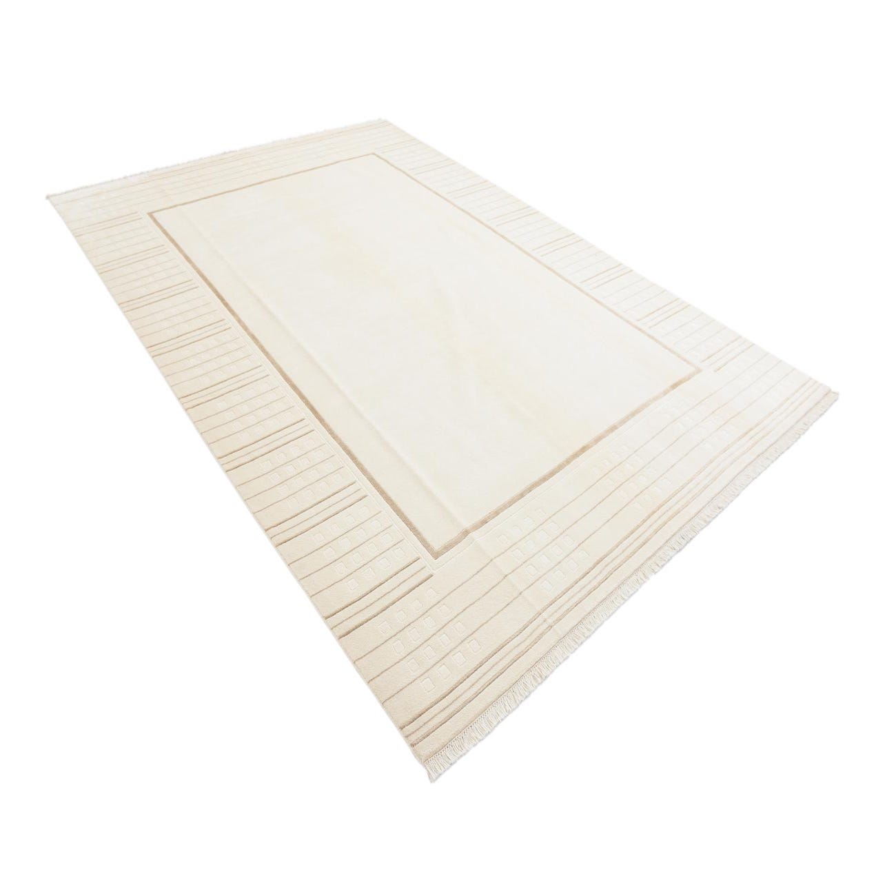 An 8x12 rectangular Darya rug in ivory and cream with a modern oriental pattern and high pile.