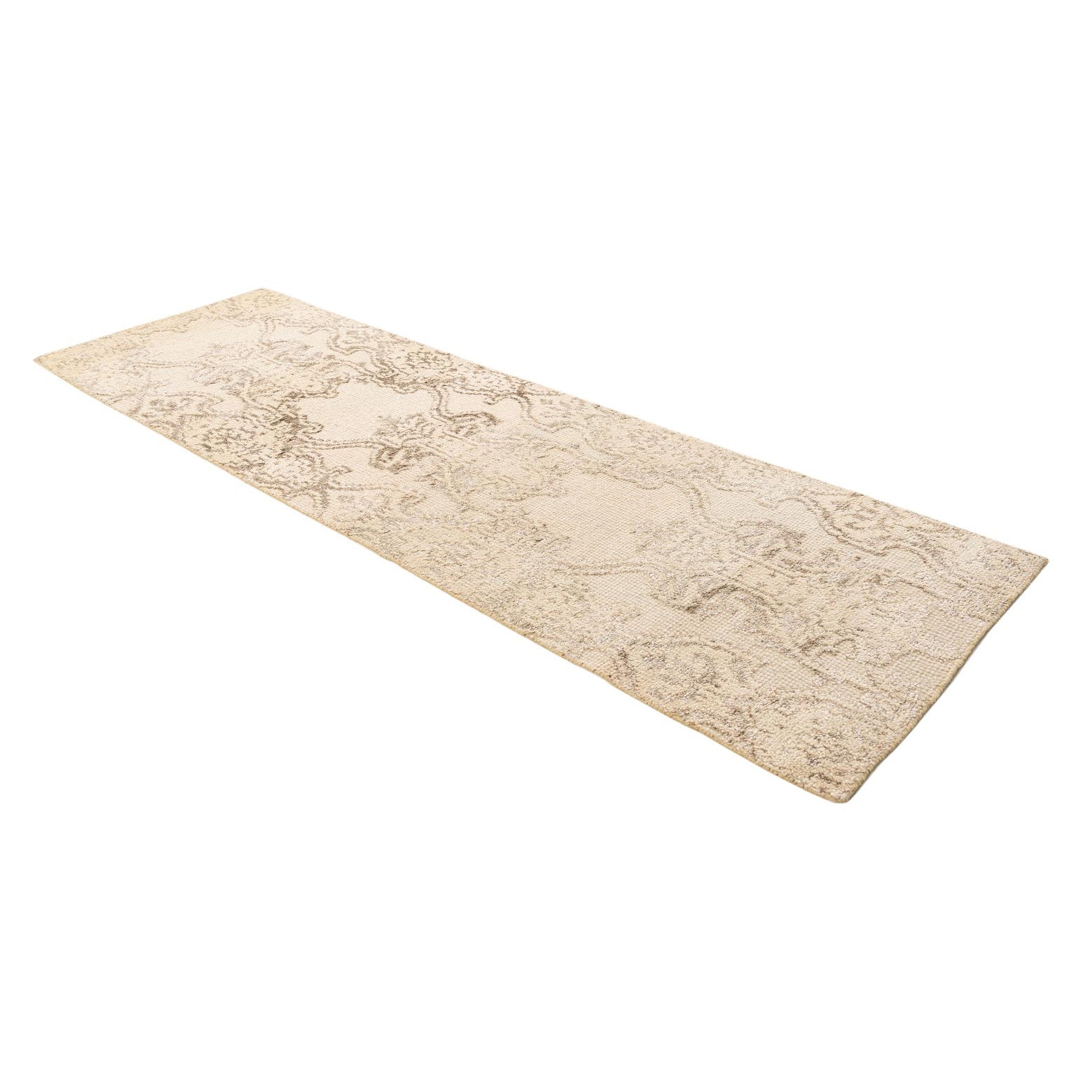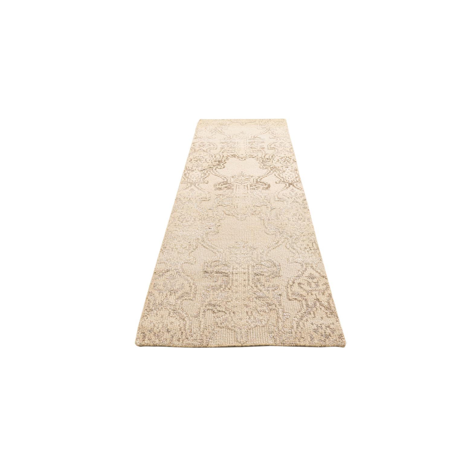 A 9 ft Darya runner rug in ivory and cream, featuring a subtle modern pattern with a high pile.