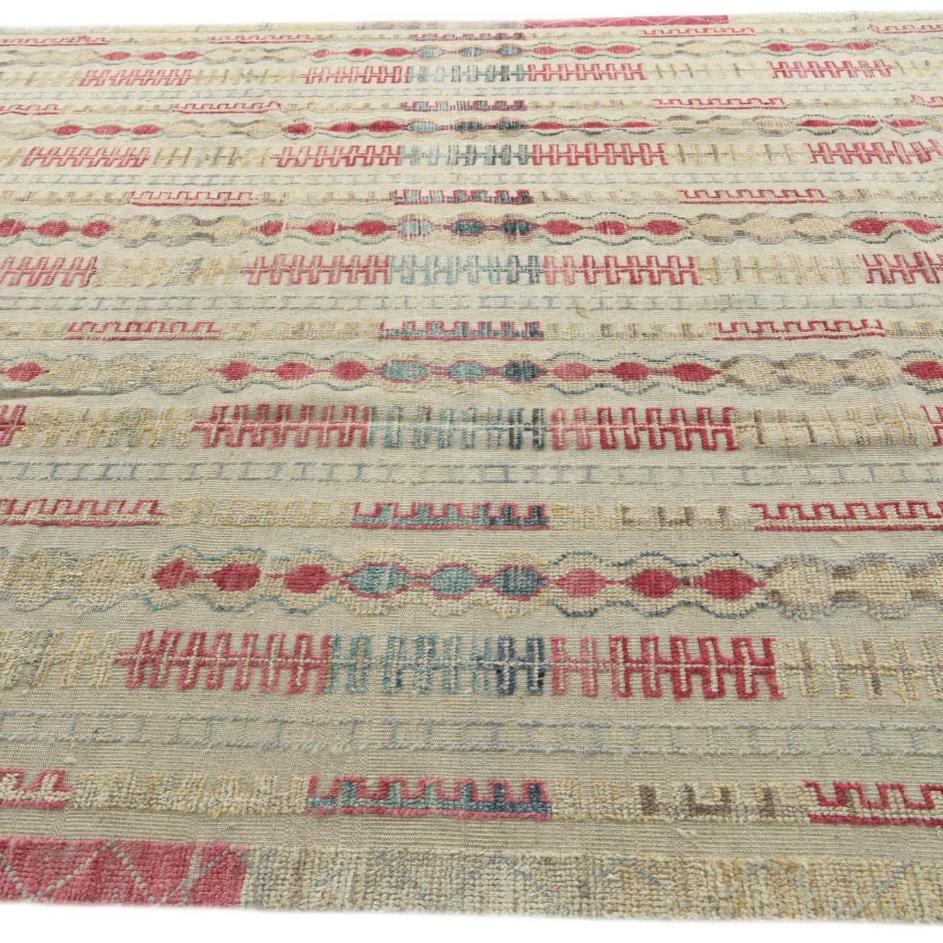 Primary color is Light Beige. Colors in this rug include: Light Beige, Gray, Green, Orange, Red, Ivory, Brown.