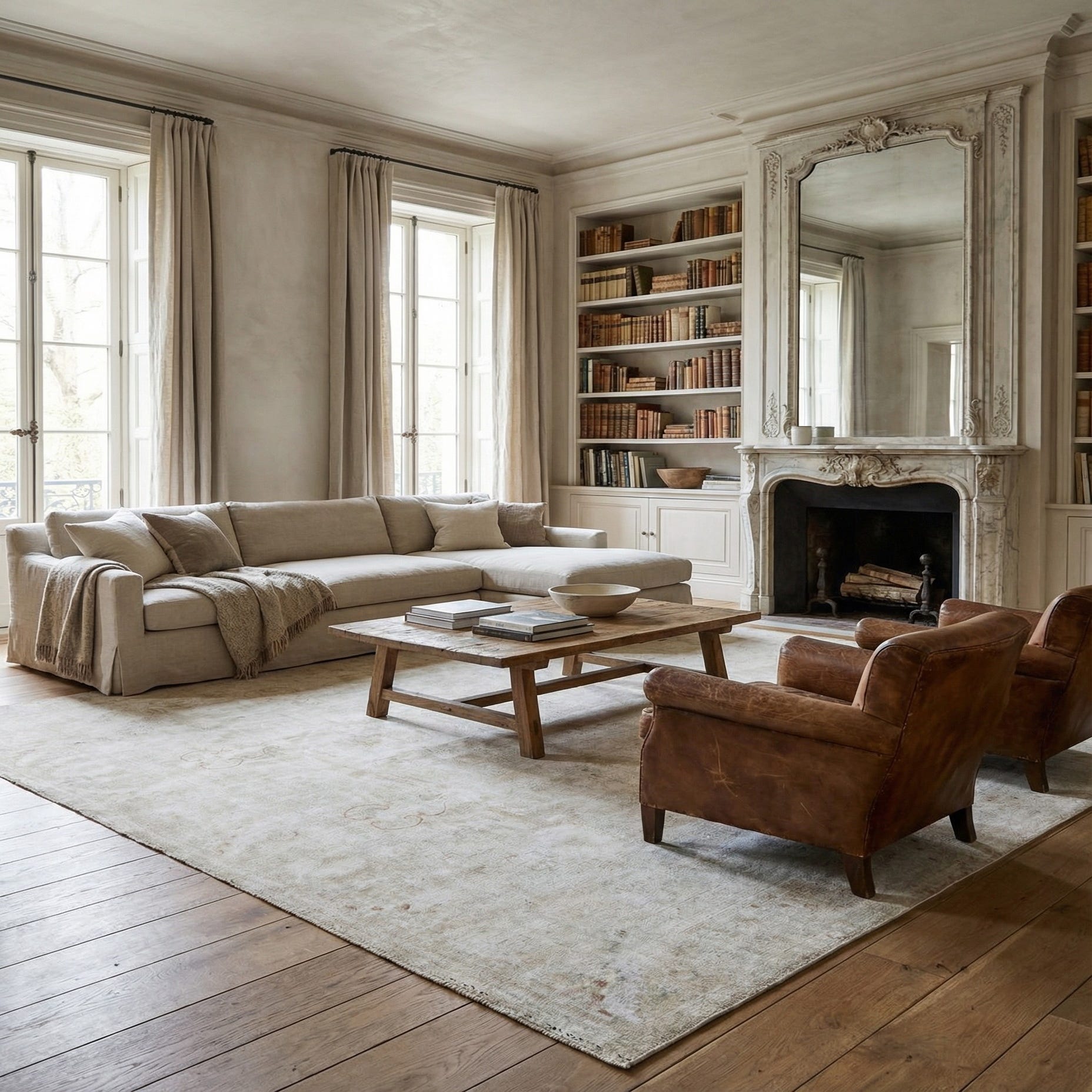 Hand-knotted from 100% wool, the rug has a low, dense pile that feels soft and supportive underfoot while maintaining a restrained, matte surface. Its light, versatile colors and understated pattern make it an excellent anchor for a living room seating group, a calming foundation for a bedroom, or a warm layer beneath a dining table on hardwood floors. Pair it with natural woods and linen upholstery for a relaxed Scandinavian look, with leather and brass accents for a refined traditional mix, or with clean-lined furniture and cool grays for a modern minimalist interior.