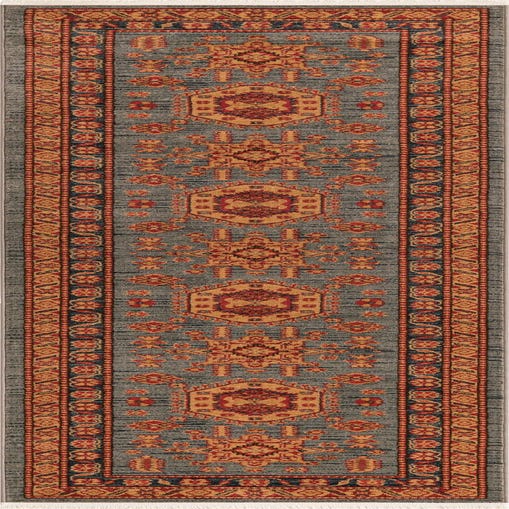 Primary color is Light Blue. Colors in this rug include: Light Blue, Light Brown, Light Green, Red, Blue.