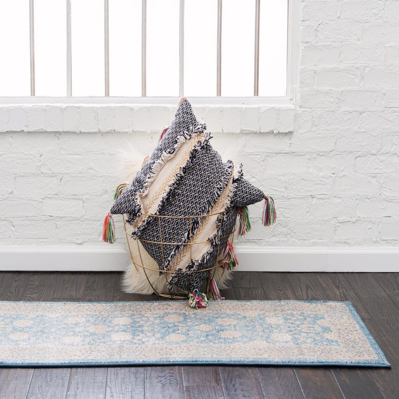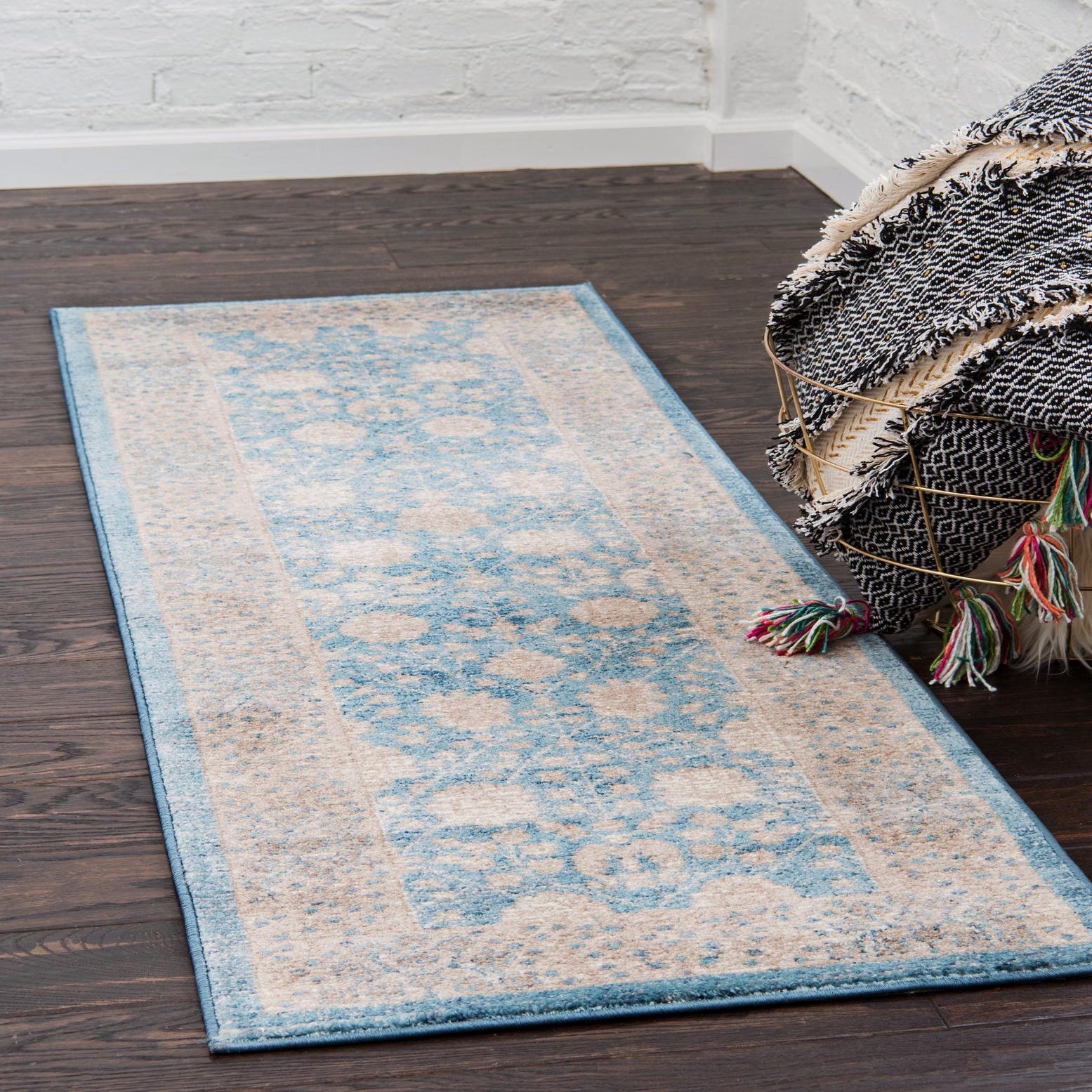 The stain-resistant and shed-free properties make this runner an ideal choice for high-traffic areas such as hallways and entryways. The delicate balance of color and design allows for versatile styling, fitting well with coastal motifs, contemporary settings, or rooms adorned with light, airy colors. Additionally, this rug can serve as a subtle, sophisticated backdrop in a minimalist or Scandinavian-inspired interior.