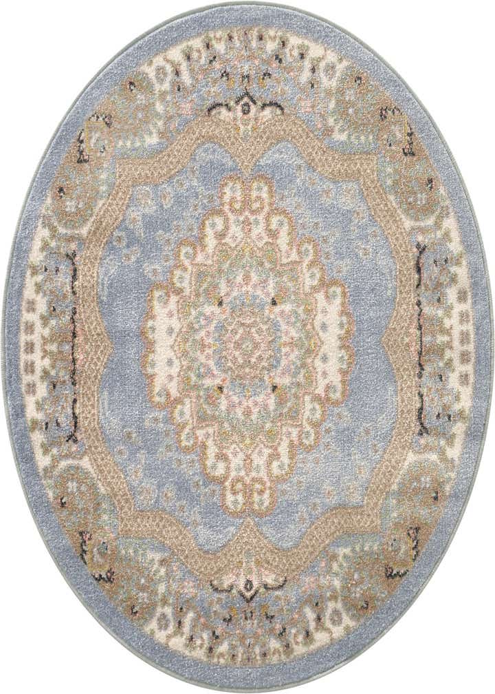 Primary color is Light Blue. Colors in this rug include: Light Blue, Beige, Ivory, Light Green, Pink.