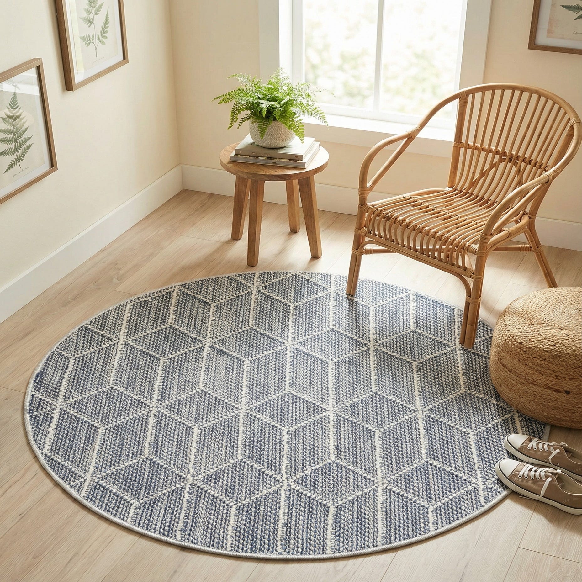 3' 1 x 3' 1 Washable Lattice Indoor / Outdoor Round Rug