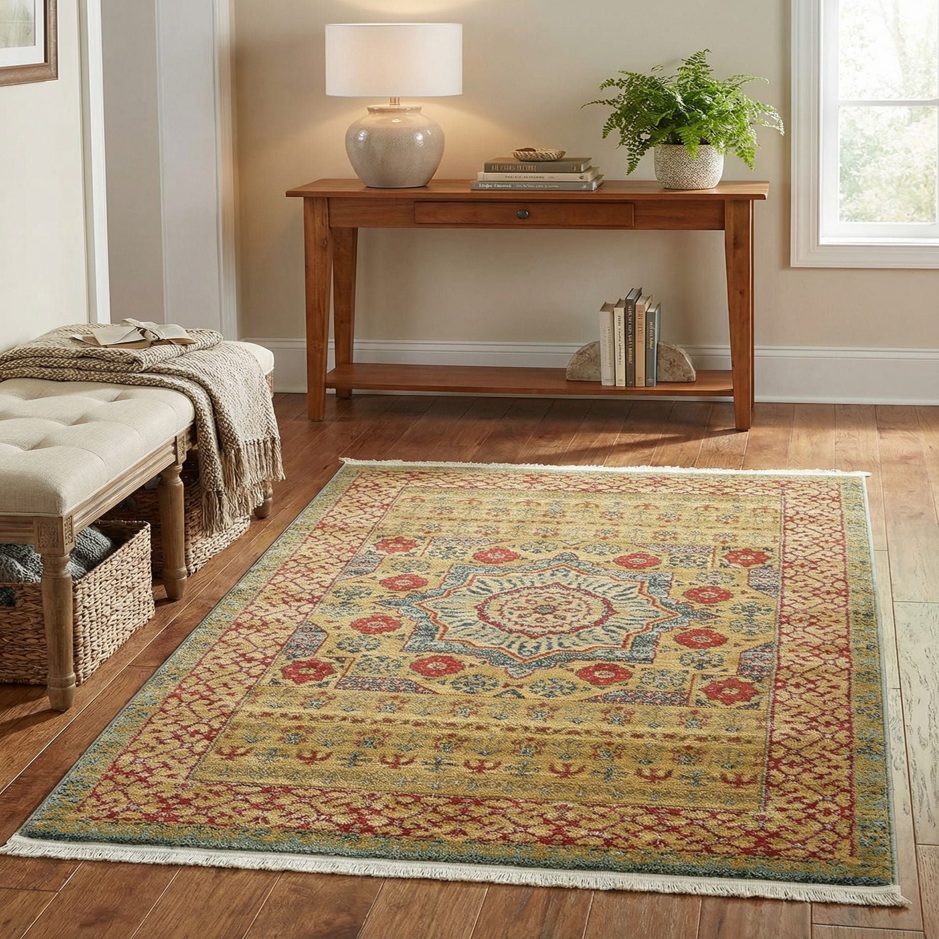 This rug pairs easily with a range of interiors: place it in an entry or hallway to introduce color and pattern, layer it in front of a neutral-toned sofa for added warmth, or use it at the foot of a bed to anchor a cozy sleeping area. It works well with traditional and transitional furnishings as well as eclectic rooms that mix vintage and modern elements—pair with navy or tan upholstery, light wood tones, and textured linens to highlight the Light Blue and Red accents.