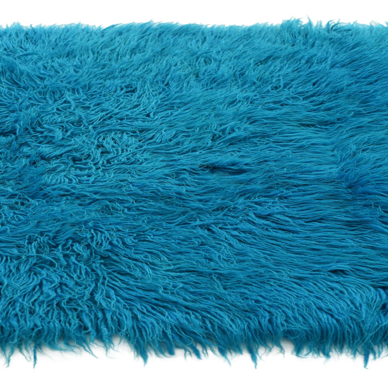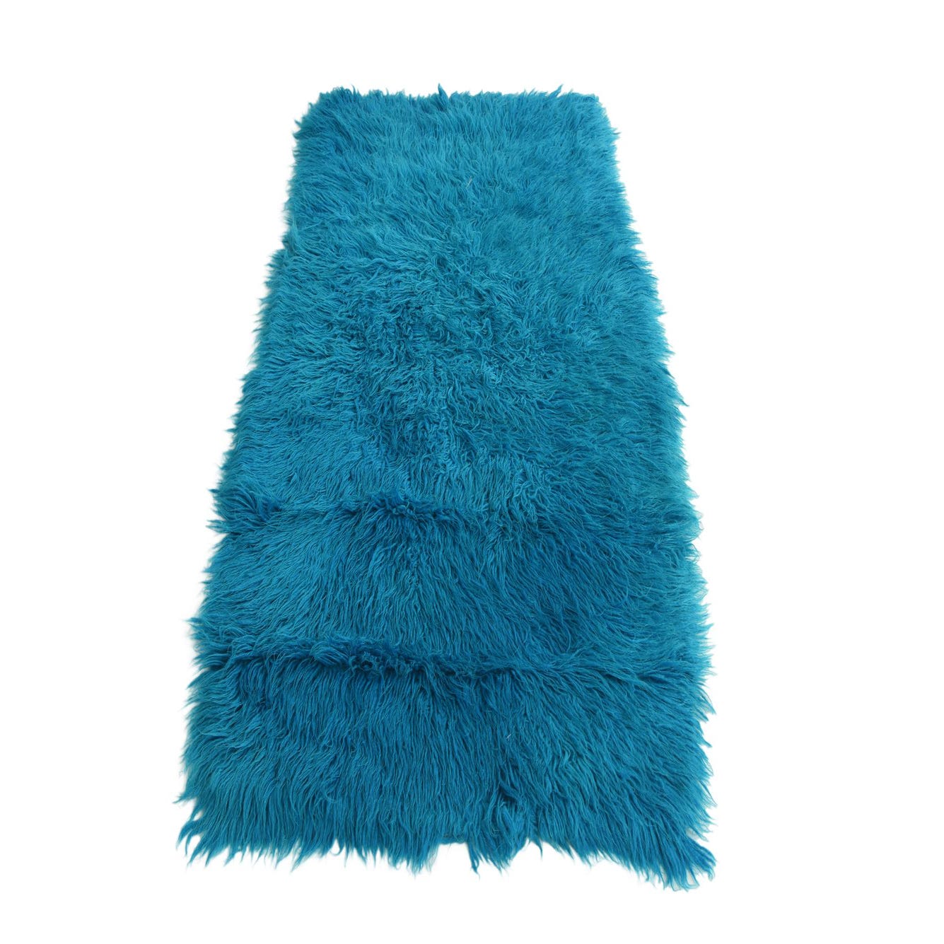 The rug’s relaxed, tactile character pairs nicely with casual, contemporary, or bohemian interiors. Use it to add a soft, colorful layer beneath a low coffee table in a living area, at the foot of a bed for a cozy bedside landing, or in a reading nook to anchor seating. Its light-blue shade works well alongside natural wood finishes, crisp whites, and woven textiles, bringing both color and comforting texture to a room.