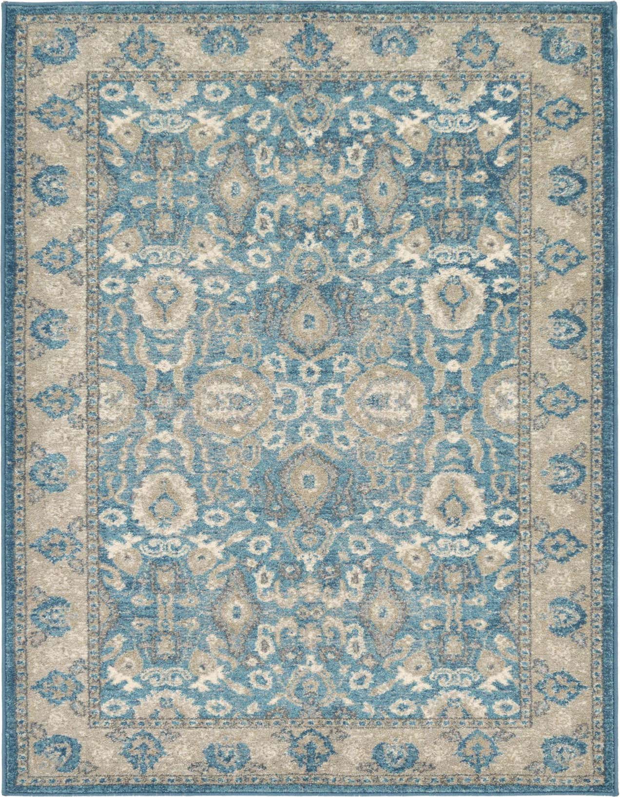 Primary color is Light Blue. Colors in this rug include: Light Blue, Gray, Ivory.
