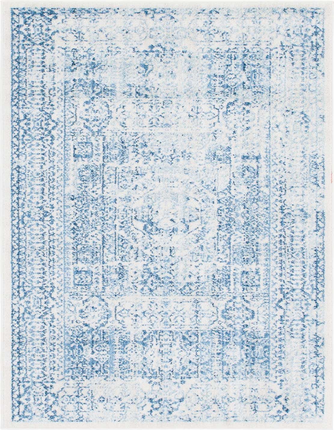 Primary color is Light Blue. Colors in this rug include: Light Blue, Ivory, Navy Blue.