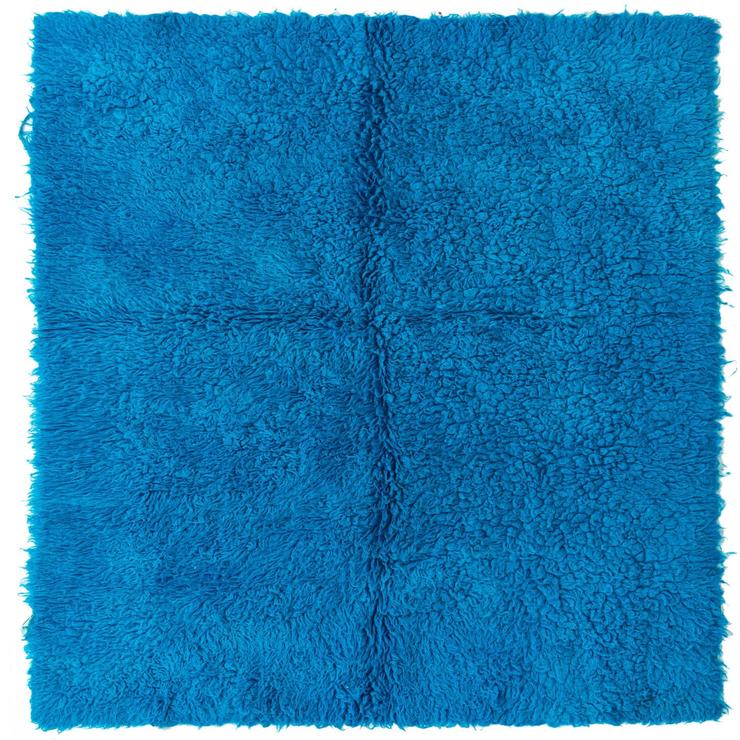 A vibrant 4x6 rectangular shag rug in a bright blue color, featuring a plush, textured pile.