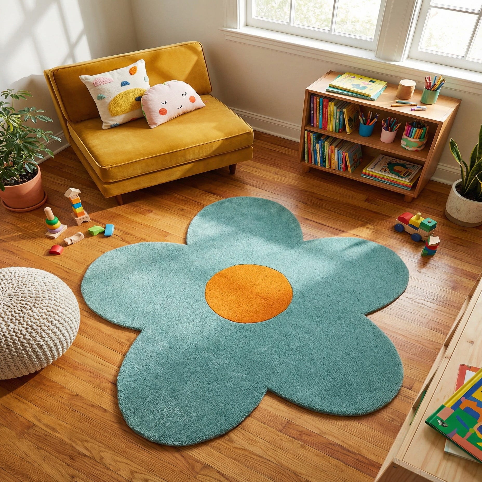 5' 1 x 5' 1 Happy Rugs Funky Flower Wool Round