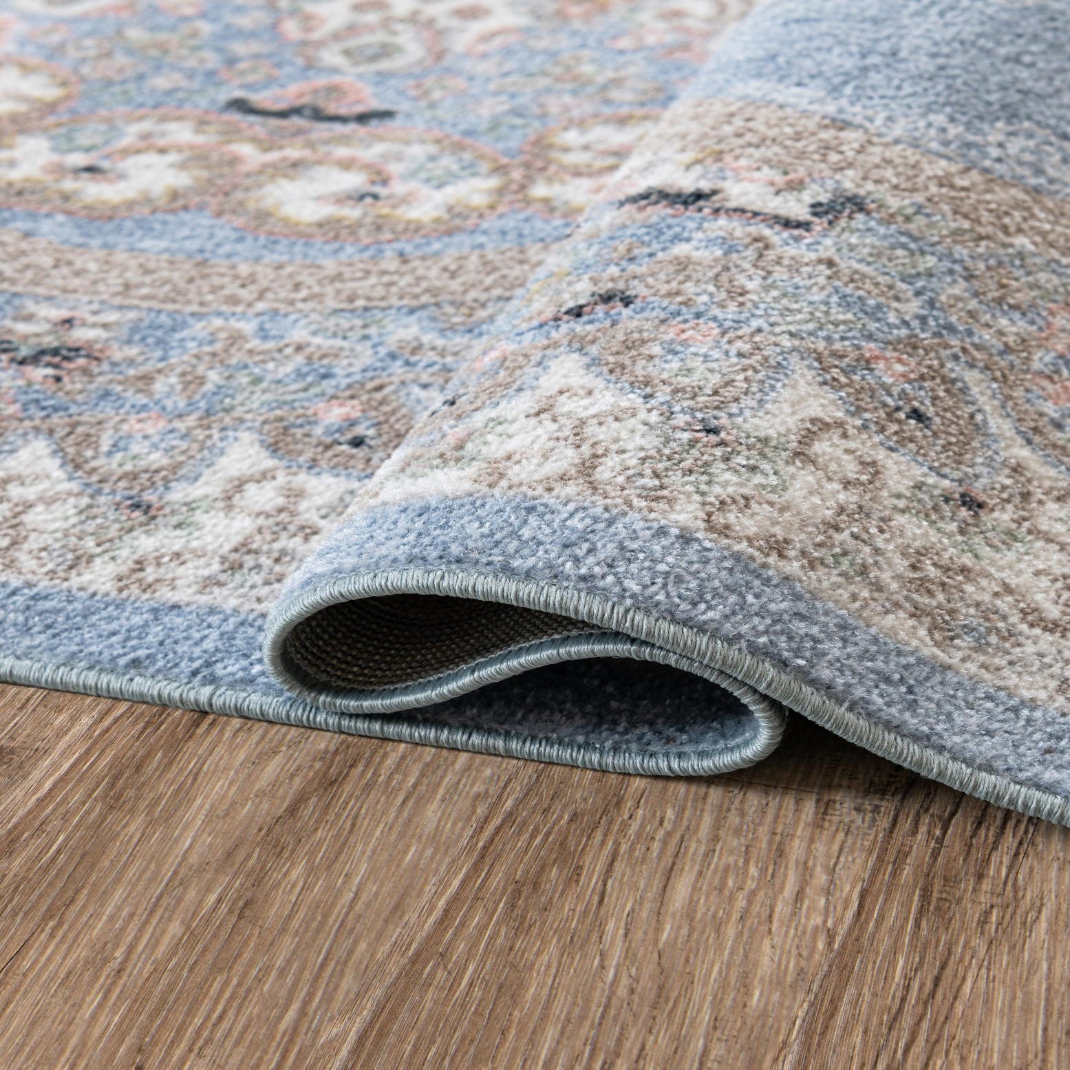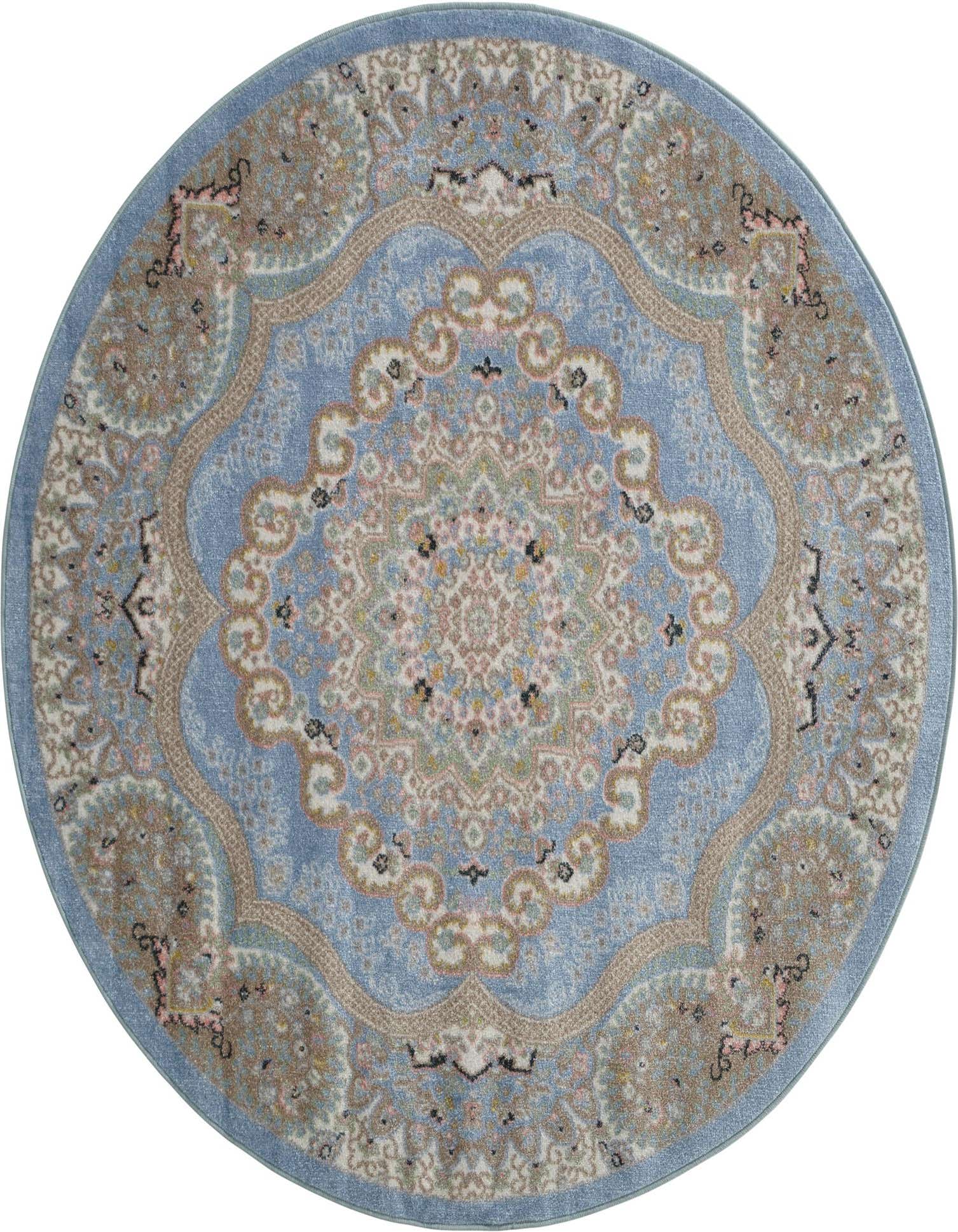 Primary color is Light Blue. Colors in this rug include: Light Blue, Beige, Ivory, Light Green.