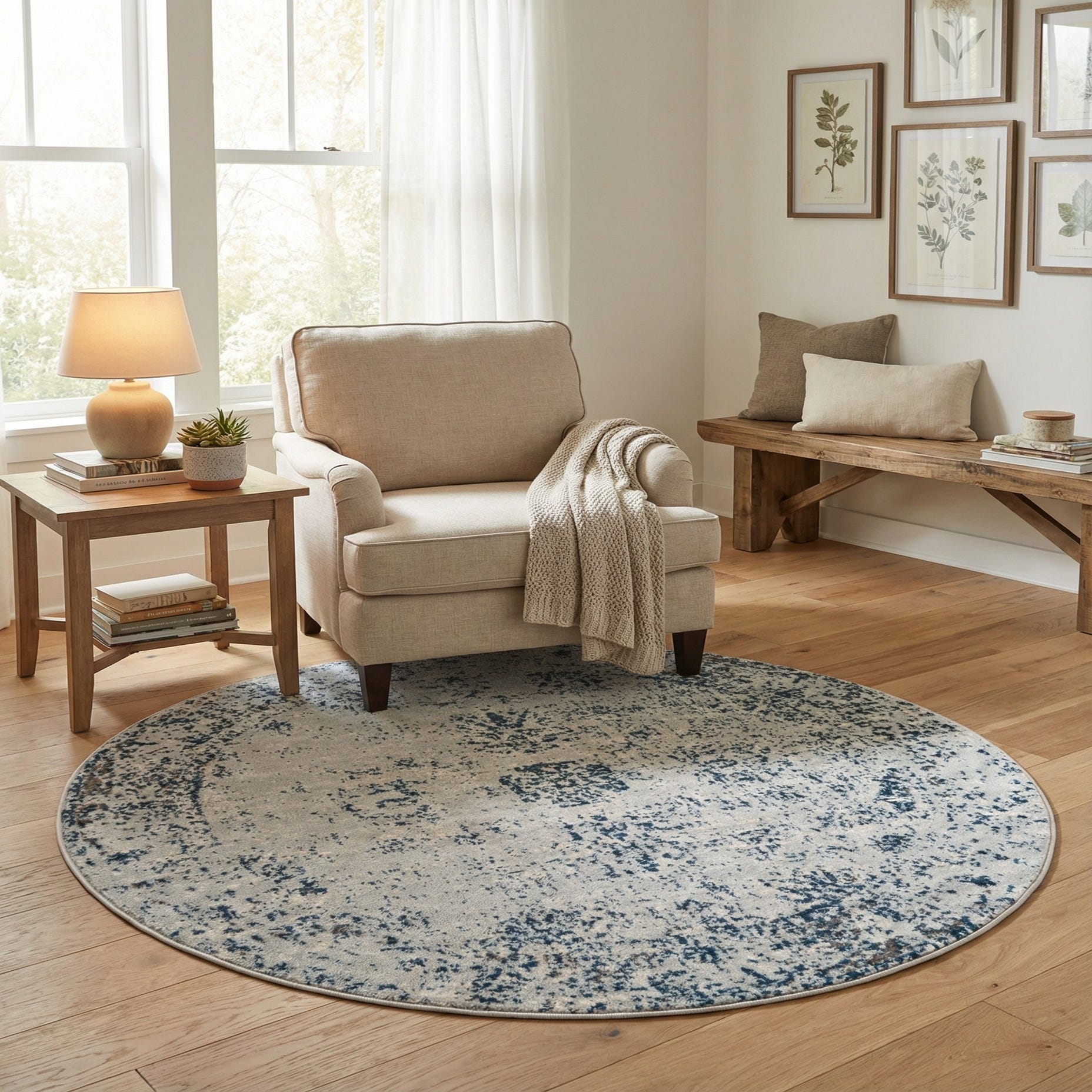 Machine-made from 100% polypropylene, the rug has a low-profile pile that feels smooth underfoot and holds its shape well. Its resilient construction and gentle sheen make it an easy layer in everyday spaces. Pair it with coastal or transitional décor—think driftwood finishes, linen upholstery and muted brass accents—or let it soften a modern living room with charcoal sofas and clean-lined furniture. It also works well in a serene bedroom, a light-filled dining nook, or beneath a round table to anchor a compact seating arrangement.