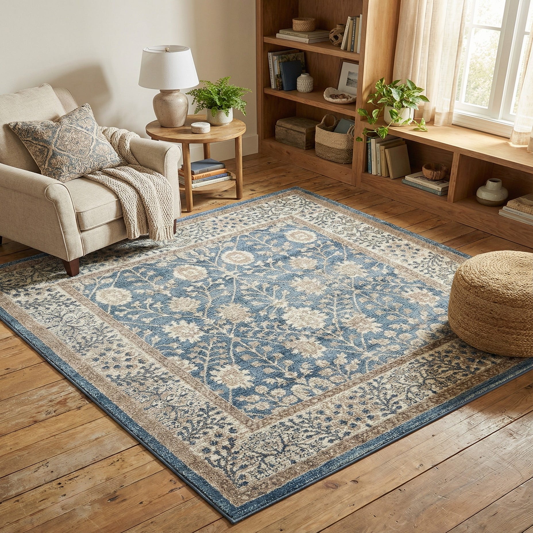 Primary color is Light Blue. Colors in this rug include: Light Blue, Gray, Ivory.