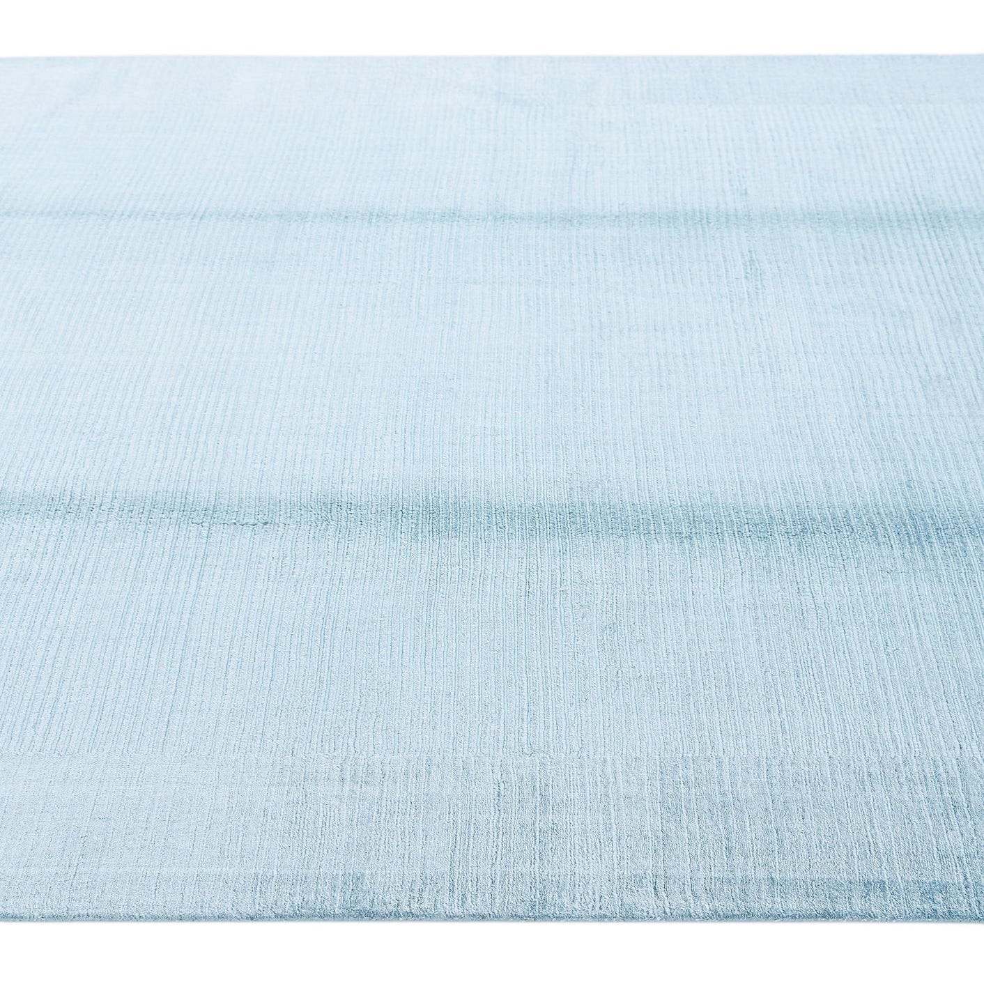 A rectangular 5x8 light blue modern area rug with subtle horizontal texture and vertical tonal variations, perfect for a living room.
